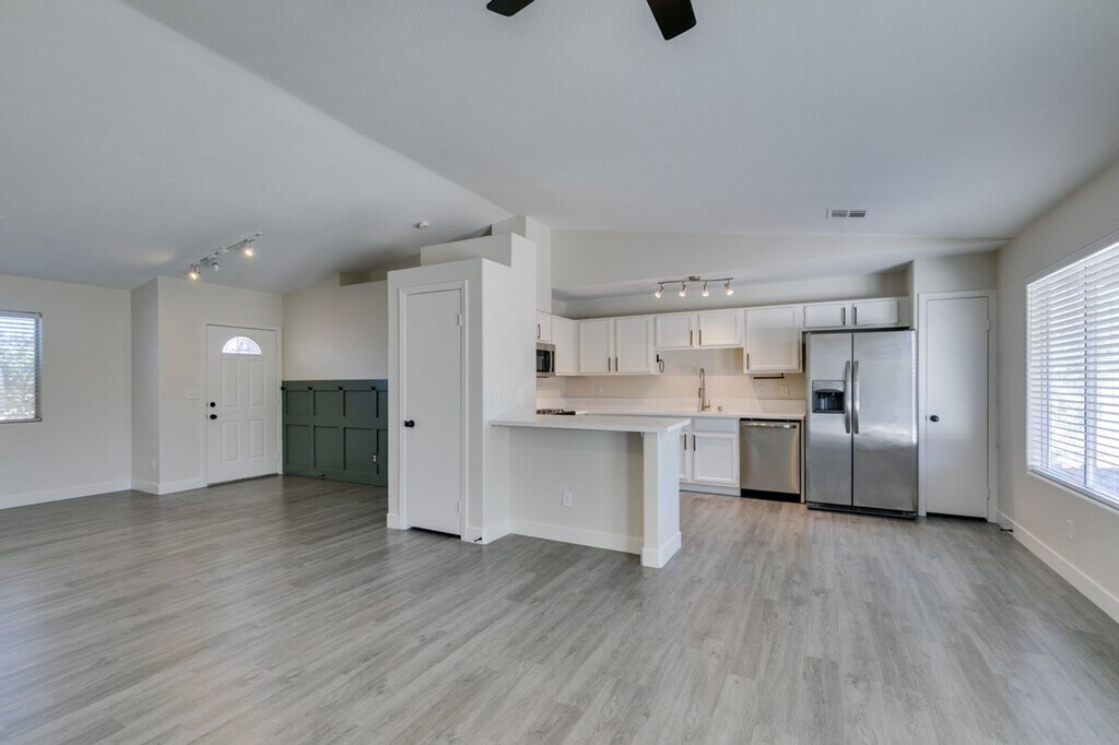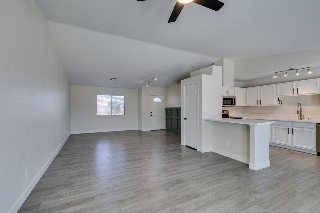 This corner-lot beauty offers modern updates and timeless comfort — with no HOA! Step inside to an open floor plan featuring vaulted ceilings, durable wood-look vinyl flooring, and a stylish accent wall in the living area. The remodeled kitchen boasts white quartz countertops, stainless steel appliances, breakfast bar seating, and upgraded lighting. French doors lead to a low-maintenance backyard complete with artificial turf, river rock, a horseshoe pit, and paved RV/boat parking. Additional highlights include a new A/C unit, updated plumbing, Nest thermostat, Wi-Fi garage door opener, and a remodeled primary bath with a glass-tiled walk-in shower. Conveniently located near parks, schools, and shopping! *Application Requirements*** -Proof of income - Approximately 3 x the rent. -Rental History will be checked going back 3 years. -Credit Check will be completed. Evictions are an automatic denial. ***Move-In Cost*** - $1996 Monthly Rent (includes trash charge) - $1900 Refundable Security Deposit -$350 Refundable Cleaning Deposit -$100 Refundable Key Deposit -$100 Admin Fee if approved -$85 Non Refundable Application fee per adult. All adults must apply. - 1 Year Lease