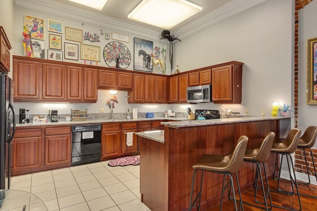 Teresa RaineyLocated inside the historic Old Guaranty Bank Building at 500 Jefferson Street, this beautifully furnished 1-bedroom, 1.5-bath residence offers approximately 1,000 square feet of character, comfort, and downtown energy--all wrapped into one refined space. With exposed brick walls and timeless architectural details, the apartment blends early 1900s charm with modern functionality. The spacious living area flows effortlessly into a full kitchen featuring abundant cabinetry and storage, making it ideal for longer-term living. A convenient half bath off the main living area provides privacy for guests, while the primary suite offers a generously sized bedroom, expansive closet space, and a large master bath with extensive storage. Laundry is located inside the unit for everyday ease. Gated parking adds security and convenience, and just outside your door you'll experience the heartbeat of downtown Lafayette--restaurants, events, Mardi Gras parades, Festival International--all while enjoying the privacy of a historically significant building listed on the National Register of Historic Places. This is an opportunity to lease more than just an apartment; it's a chance to live inside one of Lafayette's most iconic addresses.