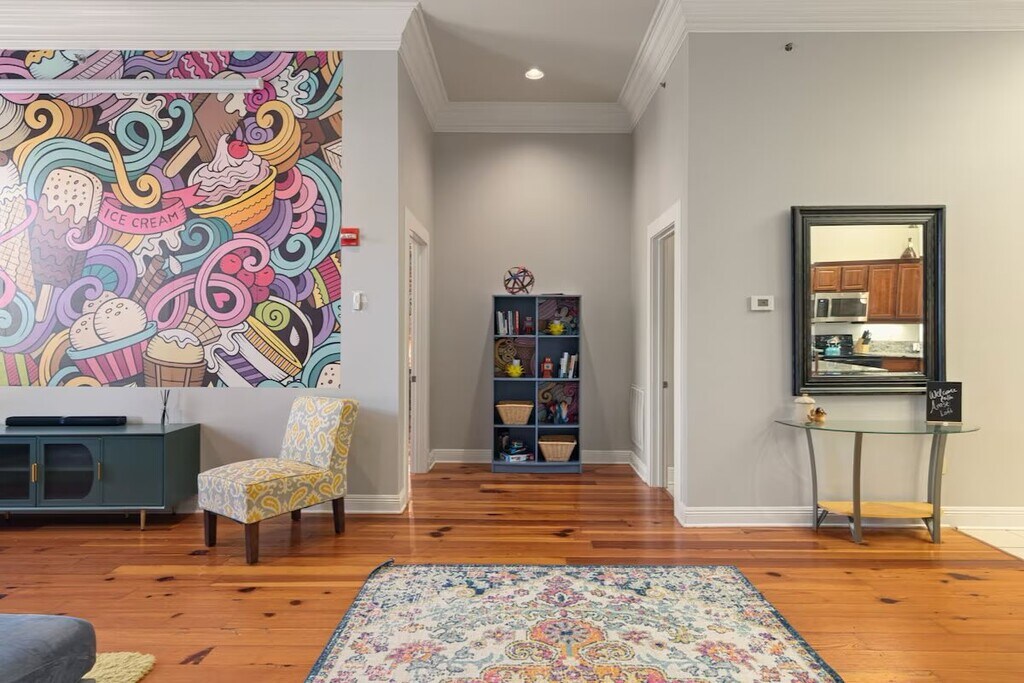 Imagine walking in to this Artsy retreat in Downtown Lafayette everyday. Step through the Looking Glass into a one-of-a-kind loft, right in the heart of Lafayette's festival drag. This artsy retreat is packed with wild, immersive design that feels part Wonderland, part gallery. Kick back for a private movie night on the big screen or stroll to cafés, restaurants, museums, and live music in minutes. With free parking and plenty of character, this loft is your portal to Lafayette's most vibrant experiences. This apartment furnished: Deposit $1750 Rent $1750 per month This apartment unfurnished Deposit $1500 Rent $1500 per month The space The Old Guaranty Bank building, located at 500 Jefferson Street in Lafayette, LA, was constructed in 1905 and served as the Bank of Lafayette. It's a historically significant building, notable for its Colonial Revival architecture with domed pavilion entrance and ornate details. The building was listed on the National Register of Historic Places in 1984. It has been transformed into a wedding and event venue called "The Jefferson." We have 5 apartments permanent apartments upstairs. There is gated parking in the rear of the building, located on the corner of Buchanan St & Congress St. Each apartment is allotted 2 parking spots. Overflow parking is located in the open parking lot next to Ton's Restaurant. It can be found by putting 516 Jefferson St in the GPS. Parking You will be allotted 2 parking spots in the gated area for your vehicles. You will also have the entire apartment completely to yourself. There are some common areas - mainly the parking lot, stairs & hallway in between the apartment. Other things to note This property is upstairs in a historic building that requires climbing stairs. There is no elevator available for this building.