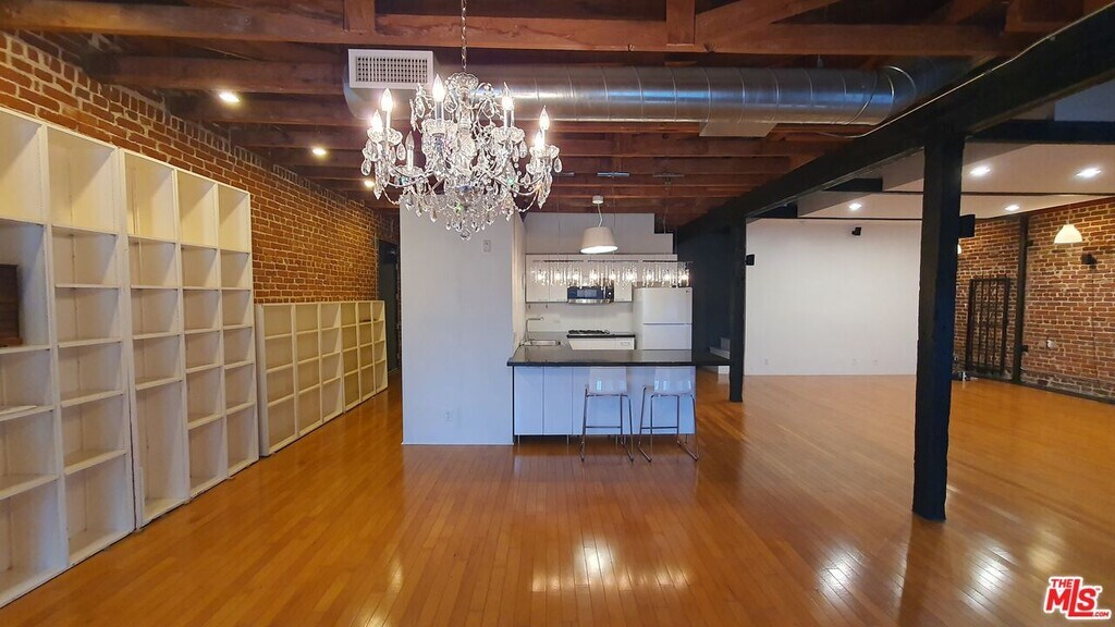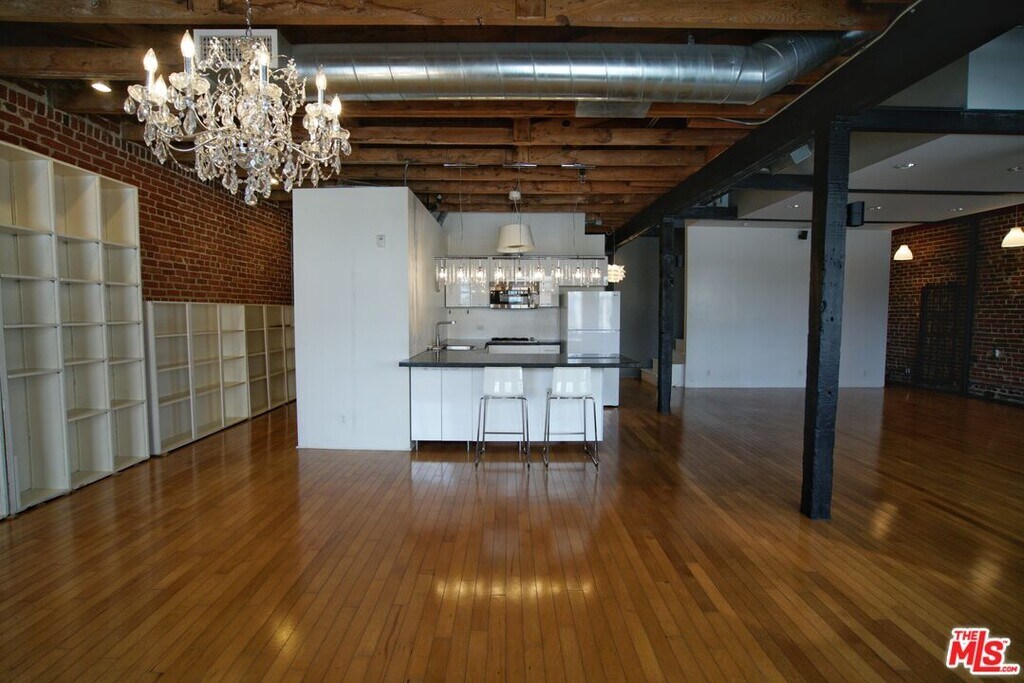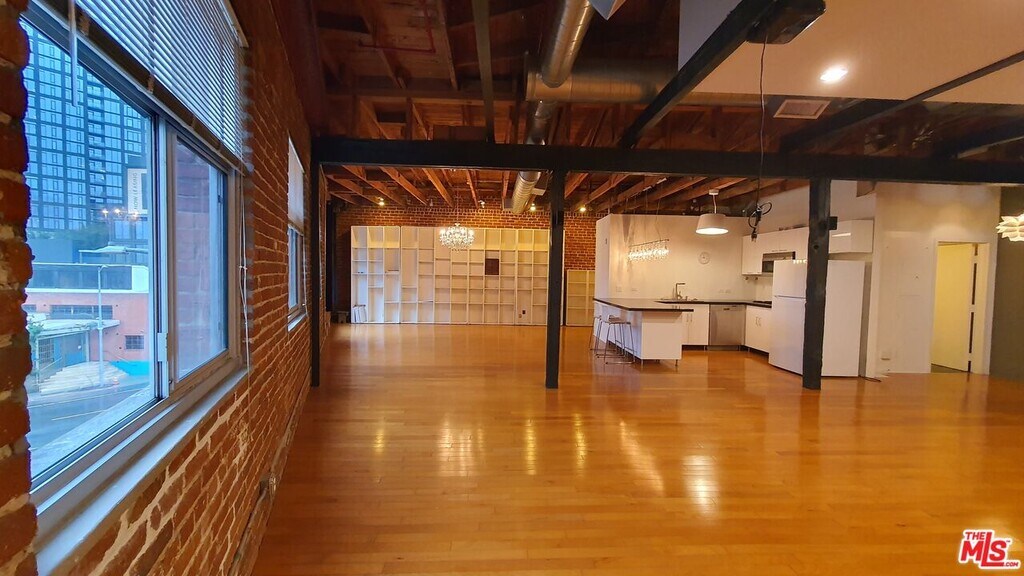 Rare Top-Floor Arts District Loft with Skyline Views & Same-Level Parking: Welcome to the pinnacle of Arts District living at 500 Molino. This stunning top-floor, two-level loft offers a massive 1,500 sq. ft. of open-concept living space, blending authentic industrial charm with modern luxury. The unit features soaring high ceilings, exposed brick walls, and custom hardwood floors, all illuminated by oversized windows that frame breathtaking views of the DTLA skyline. Unlike typical lofts, this unit offers superior privacy with only one small shared wall, ensuring a quiet sanctuary. It is an entertainer's dream, equipped with a 12-speaker surround sound system, dimmable lighting, and custom built-ins for ample storage. The chef-ready kitchen includes a dishwasher and built-in microwave, while the bathroom boasts a rain shower and jet bubble bath. Unique Convenience: Includes 1 assigned, gated parking space located on the same level as the unit no elevator required! Building amenities include a rooftop pool with BBQ, and a gym/fitness room and outdoor deck located directly across from the unit. Central A/C, heat, and in-unit washer/dryer included. Unbeatable location steps from Soho Warehouse, Bestia, Hauser & Wirth, and Little Tokyo. MLS# 26632175
