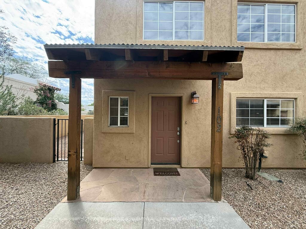 Beautiful 3BR/2.5BA townhouse with attached 2-car garage located just minutes from the UofA. This spacious 1,658 sq. ft. home features a modern kitchen with stainless steel appliances, plenty of cabinet space, and an open floor plan that flows into the living and dining areas. Upstairs you'll find well-sized bedrooms, including a primary suite with ample closet space. Enjoy the comfort of tile flooring in main areas, carpet in bedrooms, ceiling fans, and climate control throughout. Private fenced yard and patio offer outdoor living space. A full-size washer and dryer are included for convenience. Close to shopping, bus lines, parks, and more. Pet-friendly. Call to schedule a showing today!