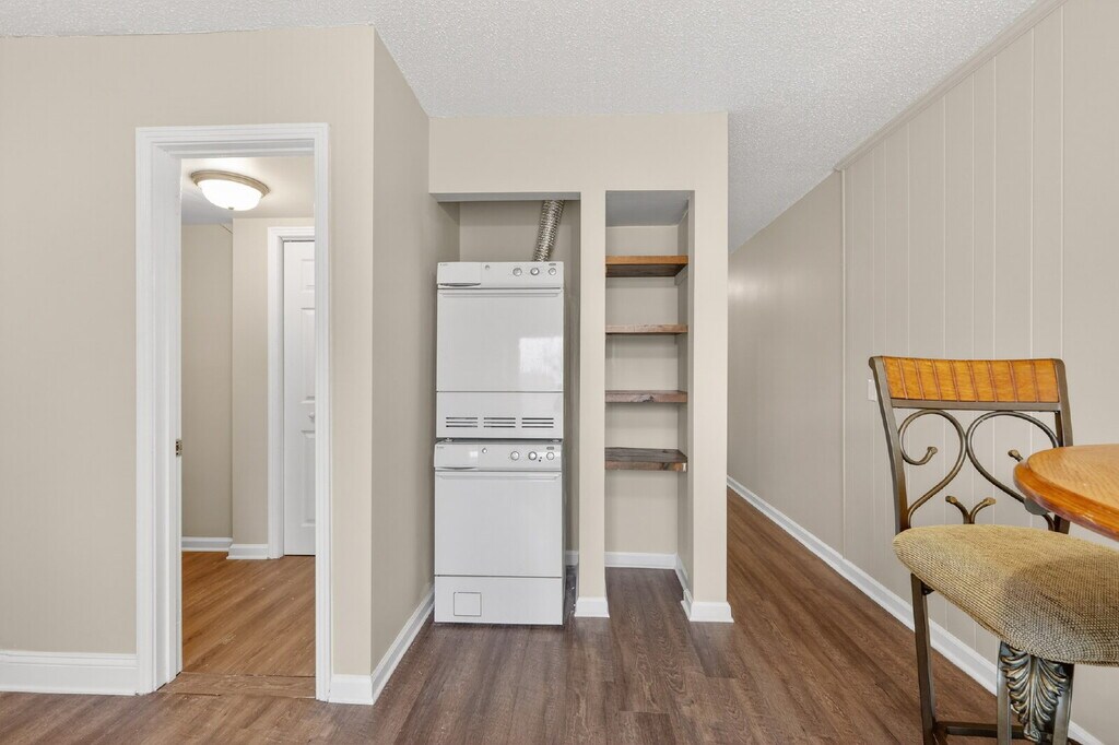 Fully renovated end unit with LVP flooring, gorgeous kitchen and all appliances including washer and dryer! Tons of storage space and a great private back patio with fence. Community pool and tennis courts and water/sewage and trash (dumpster on premises) included in rent.