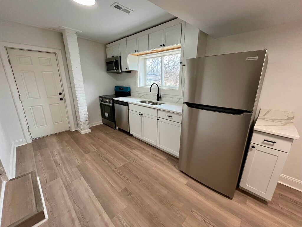 TO TOUR: You must complete a Zillow application,text or call to receive a link if you have issues applying online. Freshly updated charming home on Ridge St in the heart of Charlottesville! 3 bedrooms (2 up,1 down) with a full bathroom on the main floor right off the kitchen. Fresh flooring,cabinetry,paint,fixtures,appliances,countertops and more! OFF STREET PARKING! Tenant pays all utilities and maintains lawn. This listing is for the first and second floor of this home,there is a basement apartment below the home also for lease. 600 credit score minimum required,3x monthly income to rent preferred. Security deposit of one month's rent. Pet deposits and pet rent apply if applicable. *Pics were taken before new refrigerator was delivered.* MLS ID 672792