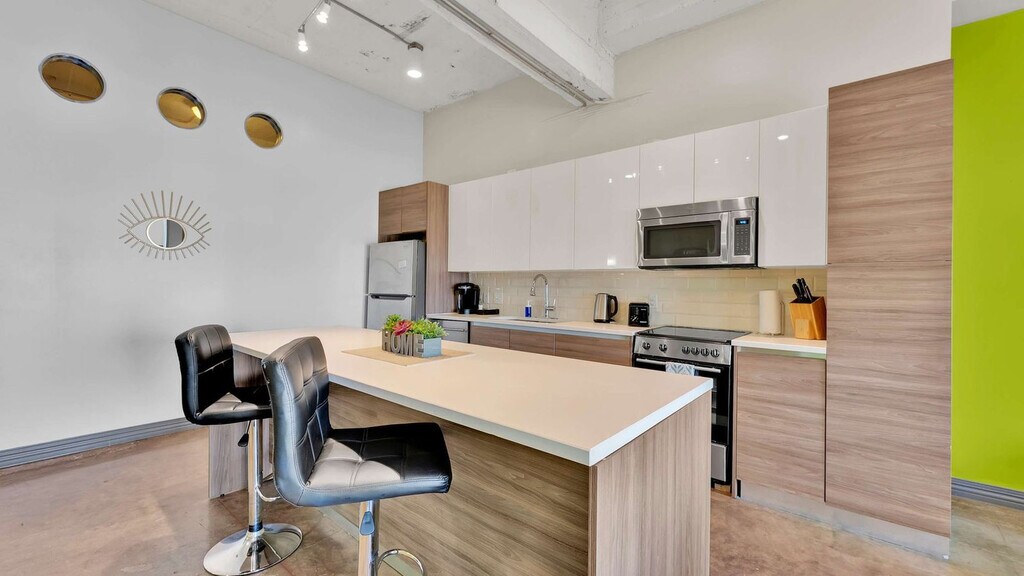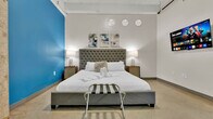 Feel at home in this stylish 1-bedroom loft on the 6th floor in Downtown Dallas, offering city views and a prime, walkable location near the Convention Center and top attractions. This modern loft blends industrial-chic design with exposed brick, sleek finishes, and designer furnishings. It features floor-to-ceiling windows with panoramic city views, a fully equipped kitchen, and access to resort-style amenities including a pool, gym, cinema, lounge, and arcade. Each guest enjoys one free breakfast item and a 12 oz coffee daily at TalkinSpoon. A second air mattress can be provided for an additional fee of $35 per night. Located in the heart of Downtown Dallas, this apartment is steps from attractions, dining, and entertainment. It's a 5-minute walk to the Convention Center and Aquarium, with easy access to Deep Ellum, Uptown, Bishop Arts, and West Village. Nearby attractions include the American Airlines Center, House of Blues, Sixth Floor Museum at Dealey Plaza, Dallas World Aquarium, Morton H. Meyerson Symphony Center, Perot Museum of Nature and Science, Dallas Museum of Art, and Dallas Cattle Drive Sculptures. Quiet hours are from 10:00 PM to 7:00 AM. No parties, smoking, or drugs are allowed inside, and there is a $250 fee for violations. The downtown location is across from City Hall, a lively area with a visible homeless presence outside; the building remains secure with regular police/security presence. Includes high-speed Wi-Fi and a dedicated workspace with city views. [GO]
