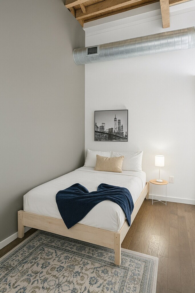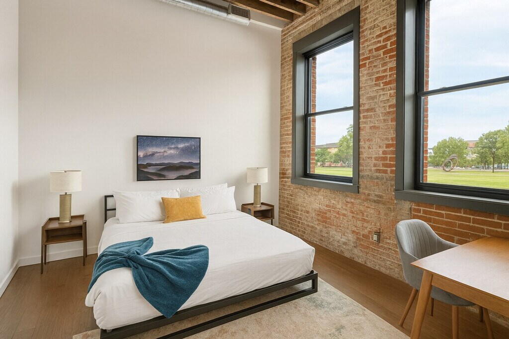 Feel at home in this bright and airy 2-bedroom loft, full of character and featuring exposed brick, high ceilings, and large windows that fill the space with natural light. The open-concept kitchen and living area include modern appliances and a central island. An in-unit washer and dryer, high-speed internet, and central air make your stay effortless. This apartment is fully furnished with all the best amenities and toiletries to make your accommodation an unforgettable experience. Fresh towels and bathroom essentials are always provided. Hotel-standard deep cleaning is performed before you arrive. Onsite parking is available for guests in the complex parking lot. Additional parking info will be provided within the check-in instructions. You cannot receive mail here. This is an apartment building, and we do not have any control over the availability or quality of the amenities. We will not be issuing a refund if any of the amenities are unavailable during your stay. Additionally, the building itself is not managed by the trusted partner, and therefore anything outside of the unit is not maintained by the partner. Self check-in is available. [SI]
