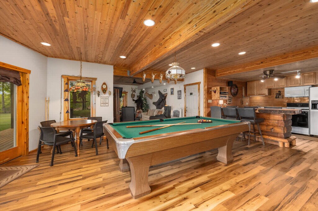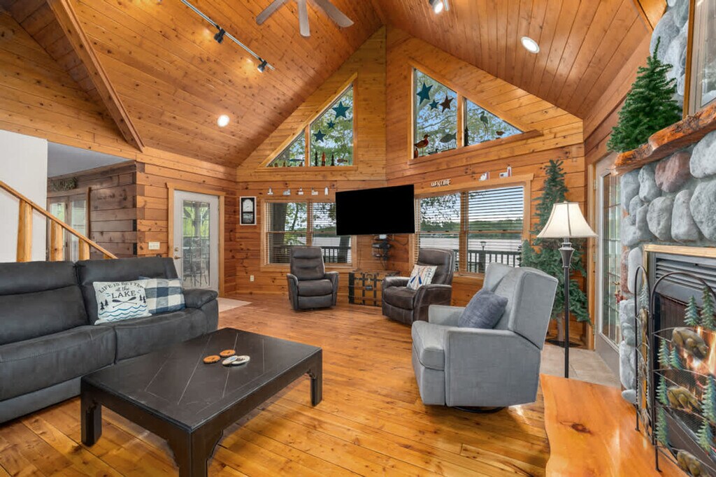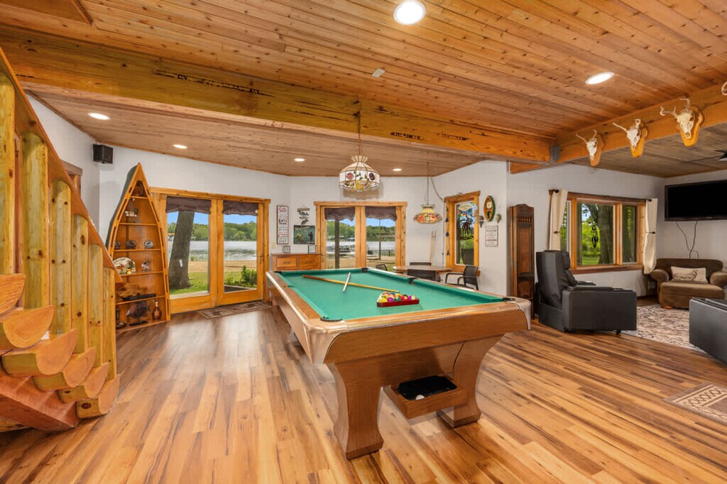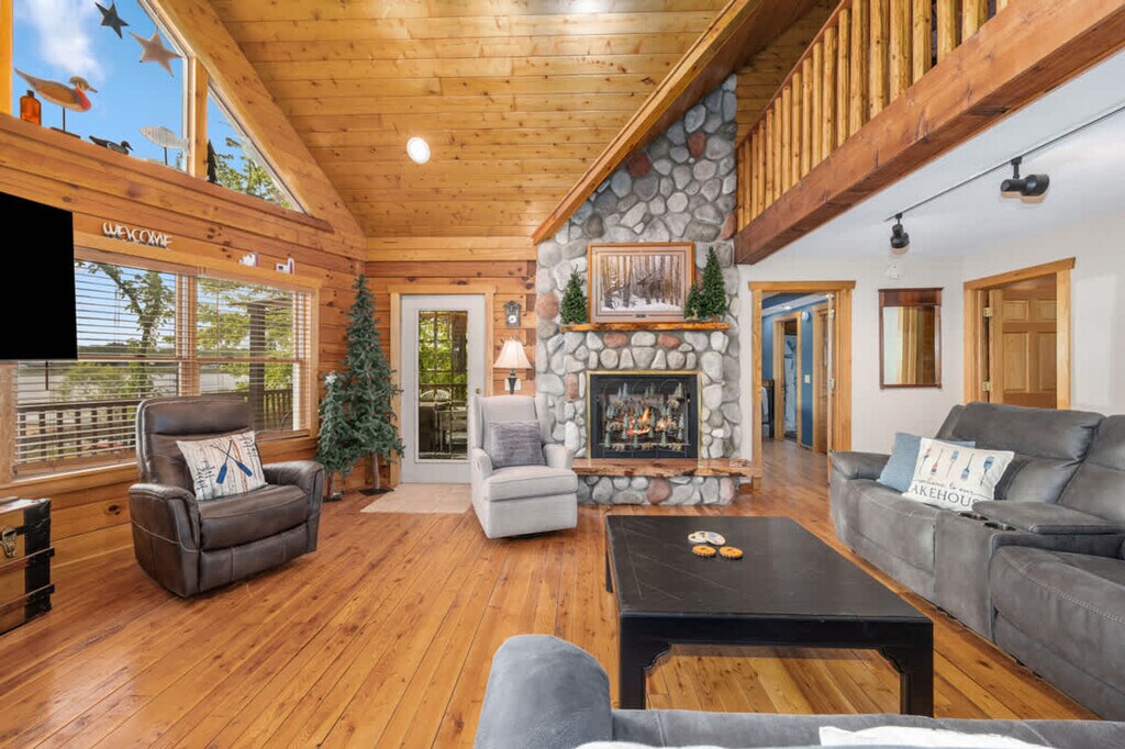 The advertised rate of $9,052/month is the lowest available price, based on a 30 day(s) stay with a move-in date of March 15, 2026. Rates vary depending on the duration of stay, season, and other parameters. For exact pricing and additional pricing components, please visit our website and enter your desired move-in and move-out dates. The rate is applicable when billed upfront; it can be higher if billed in multiple payments. Escape to this luxurious 5-bedroom lakefront cabin on Big Crooked Lake for the ultimate getaway. Feel at home in this paradise that promises an unforgettable experience. This cabin offers two kitchens, though the basement kitchen does not have a stove or dishwasher, and four full bathrooms, one of which is en-suite. Gather around fire pits for s'mores under the starlit sky, play horseshoes, or enjoy the pool table. Free kayaks are available from May 15 to November 1, and a seasonal volleyball court is also available. A pontoon boat is available to rent weekly for $1200 from Memorial Day to September 30. Pets are welcome with a fee of $20 per night, $100 per week, or $250 per month, and only potty-trained dogs are allowed. The neighborhood offers an idyllic outdoor living experience with its proximity to a beautiful lake and natural surroundings. Guests can enjoy boating, fishing, and swimming in the private lake, as well as explore picturesque nature trails and parks. Located conveniently near key attractions such as Cannonsburg Ski Area, Downtown Rockford, Rogue River Park, North Kent Golf Course, Fred Meijer White Pine Trail State Park, Grattan Raceway, and just a short drive from Grand Rapids, this cabin is your gateway to a memorable vacation. Getting around is convenient with easy access to nearby attractions, and having a vehicle is recommended for optimal mobility. Biking is popular in the area with scenic trails and paths, while ride-sharing services like Uber and Lyft are available for convenient transportation. Walking is also a viable option for reaching nearby amenities. Do not drive more than 5 mph down the road. Smoking is permitted outside, and trash must be disposed of properly. Quiet hours are from 10 pm to 6 am. There should be no loud music or parties, and the neighbors should not be disturbed. Do not tamper with or disable the security camera or smart home devices. Keep the number of guests in your reservation accurate and don't violate the occupancy limits. Kayak users must sign a waiver. Check-in and check-out times and procedures must be followed. Do not rearrange furniture. Excessive trash left will result in a $100 fine. Violating these rules may result in eviction without a refund. [SI]