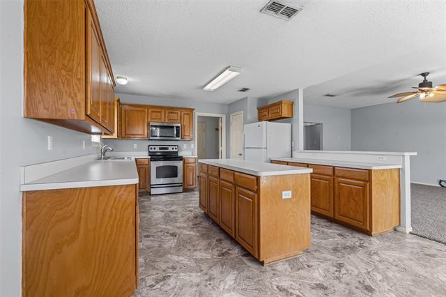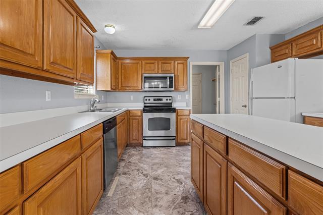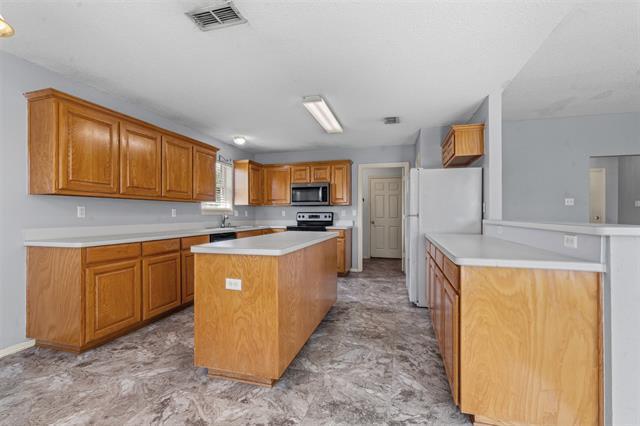 Well-kept 3-bedroom home, living with fireplace opens to kitchen with island and breakfast area. Utility room has extra storage. Sprinkler system front and back. This is a great corner lot home with side entry garage. Available October 15th