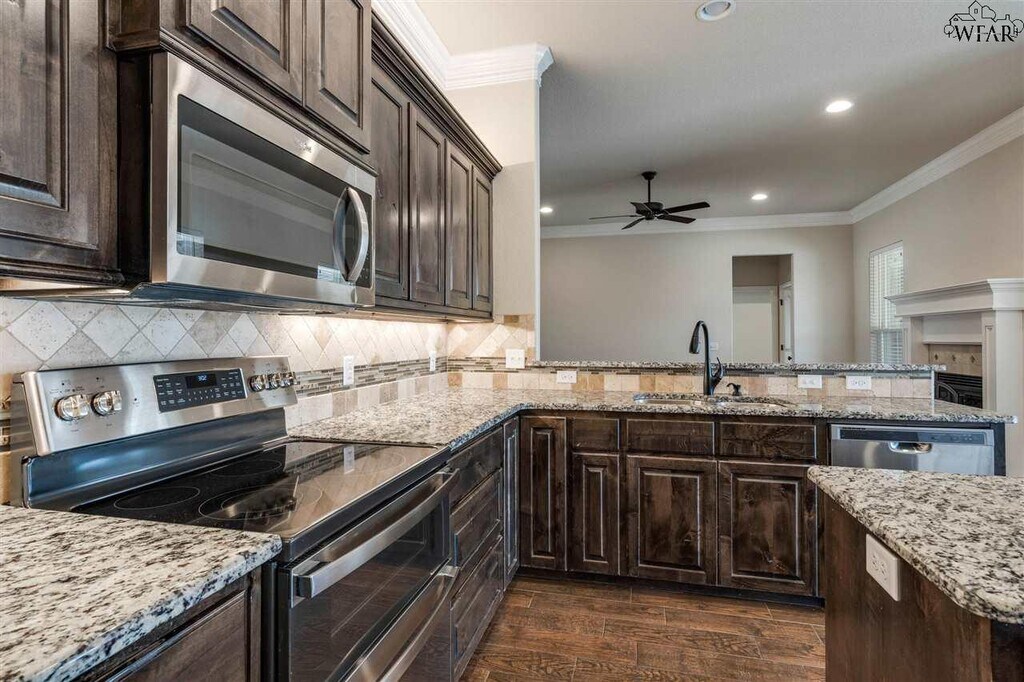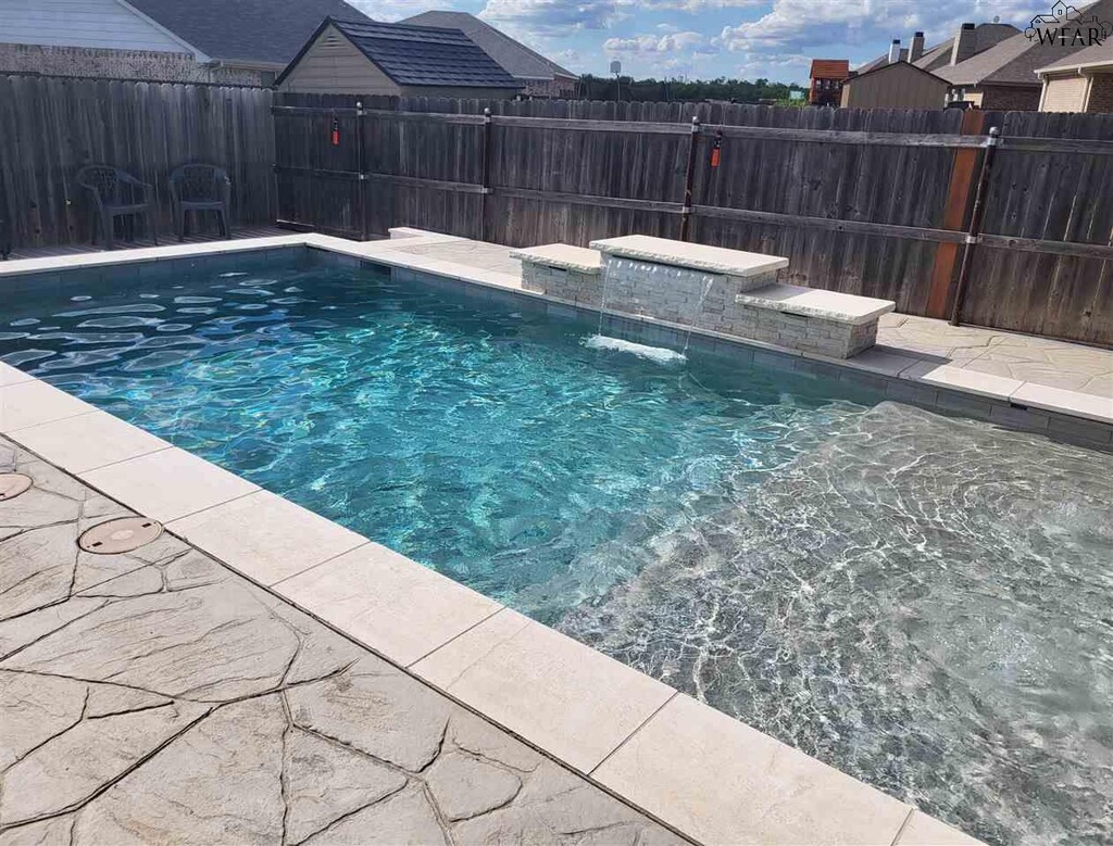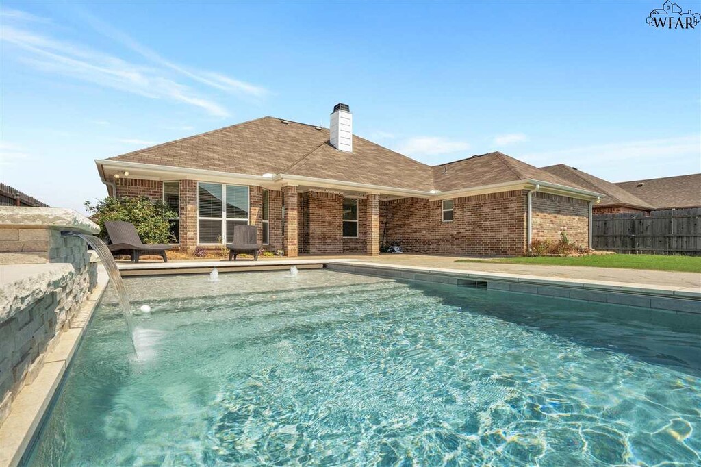 FOR LEASE. Price INCLUDES pool maintenance. 5002 Blue Mesa is a modern 2018, 4-bed, 2-bath open-layout gem features upscale fixtures & hard surfaces. The privacy-fenced backyard offers a truly serene retreat. Enjoy outdoor living with a new 2024 inground pool, complete with a tanning ledge, fountains, and an automatic safety cover. Located on the Southwest side of town a short drive from Sheppard AFB and within the West Foundation, McNiel & Memorial attendance zone. 3-year lease preferred. Available 6/1/26 MLS ID 182989