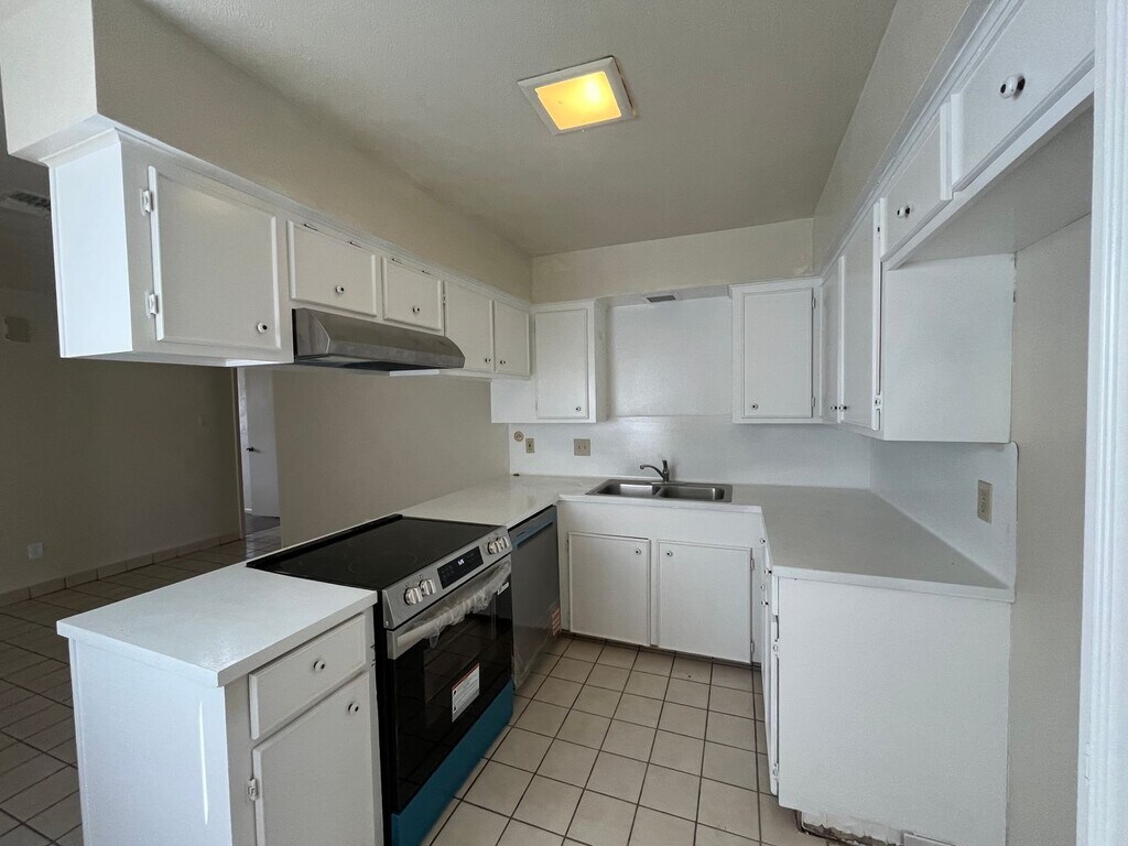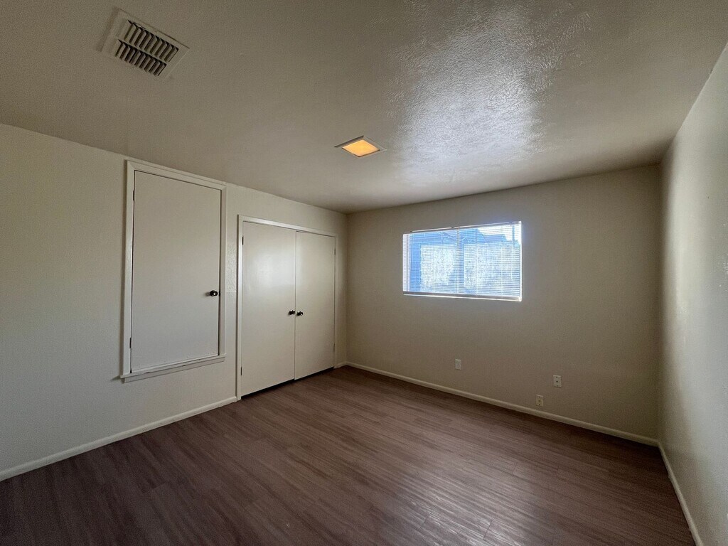 Three bedroom two bath home with split floorplan on the south side with a 2 car garage and alley access. Front gate leads you to your own private courtyard. Fresh paint, and vinyl flooring throughout with lots of windows that allow for plenty of natural light to fill the rooms. Front door opens up to a large living room with floor to ceiling brick fireplace for decorative use and beamed ceiling. Primary bedroom overlooks the front yard and boasts double sinks, double walk in closets, and tub shower combination. Kitchen with casual dining area and courtyard access leads to a hallway where you will find the other bedrooms and a hall bath. Both bedrooms are spacious and allow for large furniture, boast ceiling fans, new blinds, and spacious closets. Hall bath offers double sinks, lots of countertop space, storage closet, and a tub shower combination. At the end of the hallway, you will find access to the two car garage and washer and dryer connections. Located just off Saratoga with quick commute to schools, parks, grocery, shopping, restaurants, and so much more. Call a realtor to schedule a showing.