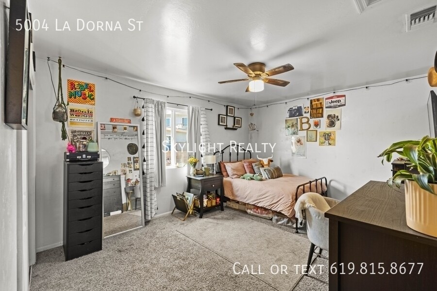 Now Leasing for 2026! 5 Bed 3 Bath Home at 5004 La Dorna Street – Walking Distance to SDSU! Book a Tour: We'd love to show you around! Call us at to schedule a tour. Check out the full Virtual Tour: Property Features: -In unit Washer/Dryer -Dishwasher -Refrigerator -Private backyard and patio -Walking distance to SDSU APPLICATION / LEASING PROCESS: 1. Use this link to apply online (if you are applying with a co-signer, they must apply as well): 2. Once your application is submitted, email your name and the unit you applied for. 3. Upon approval, pay a $1,500 initial holding deposit - once received, the listing will be removed online and the lease created. 4. Sign the lease and submit the remainder security deposit within 2 weeks. Follow Us: Stay updated with more listings by following us on Instagram: @Aztec.Living Listed by Skylight Realty DRE# 02222135