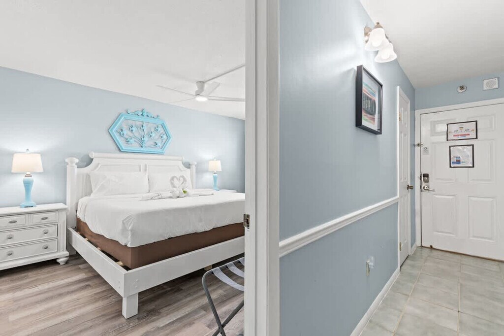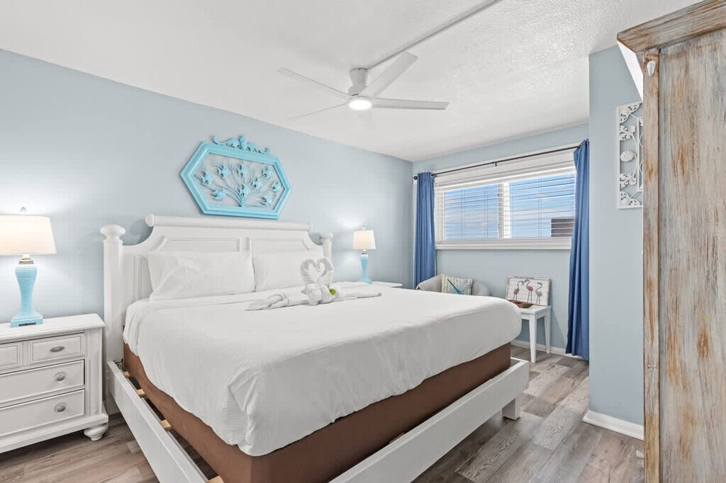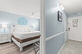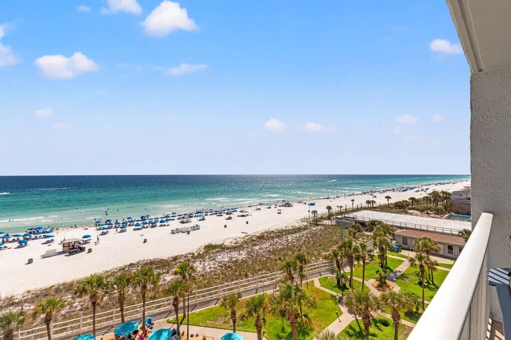 Feel at home in this fantastic oceanfront condo with beach access. This 1-bedroom, 1.5-bath condo sleeps 5 and boasts a private balcony and amazing views. The bright and cheerfully decorated interior will greet each lucky guest after a day of excitement. The full kitchen is equipped with modern appliances and cookware. When everyone is looking to relax, the smart TV offers streaming capabilities, and high-speed Wi-Fi is available. Extra perks include a shared pool and hot tub, a private washer and dryer, and central AC. Enjoy free seasonal beach service from March 1 to October 31, 2025. The property is located near many attractions, restaurants, and shopping. For boat lovers, three full-service marinas are within a short distance. Golf options abound with public courses at Signal Hill, Holiday, Bay Point, and Shark's Tooth, the famous Greg Norman-designed course. The property is undergoing a balcony restoration project from September 2025 to January 2026. Guests should expect noise and dust, and should verify if they will have access to their balcony during their stay. Quiet hours are between 11 PM and 7 AM. Per PCB Ordinance 1632, maximum occupancy is 5 guests including children and infants. Check-in is at 4 PM CT (5 PM Spring Break and Major Holidays). [SI]