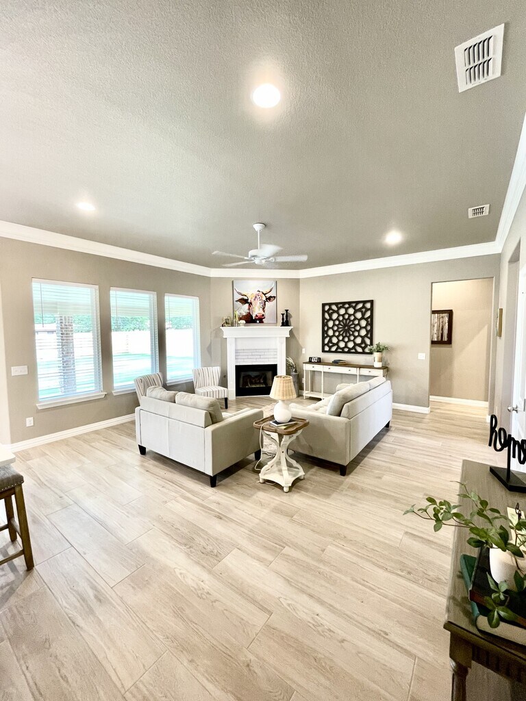 Beautiful 4 Bedroom, 2 Bathroom Newer Construction in Patriot Place This stunning home in Patriot Place offers 4 bedrooms and 2 bathrooms with high-end finishes and a thoughtfully designed open floor plan. The interior features 10-foot ceilings, ornate crown moulding, and durable wood-look tile flooring throughout the main living areas. The kitchen is beautifully appointed with custom paint-grade cabinets and quartz countertops, perfect for both everyday living and entertaining. The bathrooms feature custom tile shower and tub surrounds, adding a modern, upscale touch. The spacious yard includes a privacy fence and a sprinkler system in both the front and back yards for easy maintenance. Conveniently located within walking distance to John Tower Elementary and less than one mile from Sheppard Air Force Base, this home offers comfort, style, and an excellent location. Monthly rent $3,100, Security Deposit $3,100. Pet owner approval. $55 application fee. Call today for your showing.