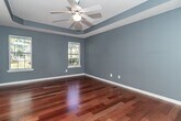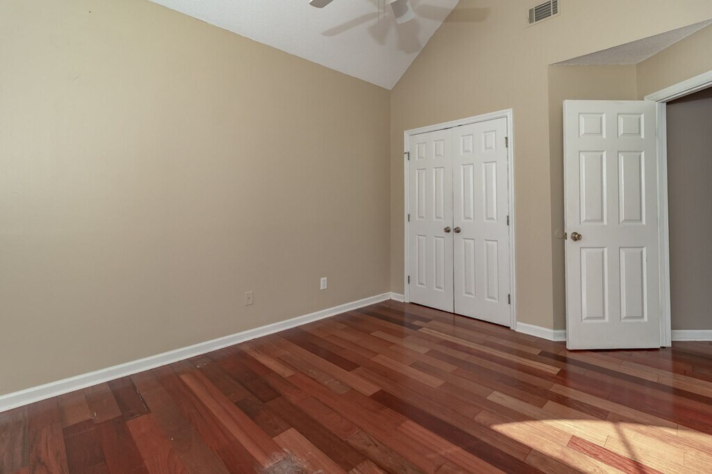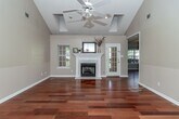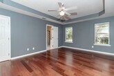 Beautiful 4 bedroom 2 full bath home with over 2100 square feet and a large private fenced yard! Wood floors throughout and no carpet. Tiled floors in bath, kitchen and laundry. Large family room offers vaulted ceiling, cozy fireplace, and skylights for natural light. Master bedroom includes tray ceilings with separate his and hers walk-in closets. Master bath features his and her sinks, water closet, garden tub and a separate shower. Huge beautiful back yard with a patio arbor and rocking chair front porch. Large two car garage and located on a quiet cul-de-sac. Move in ready including refrigerator and washer/dryer. Pets negotiable with owner approval, up to date vet records and non-refundable deposit.