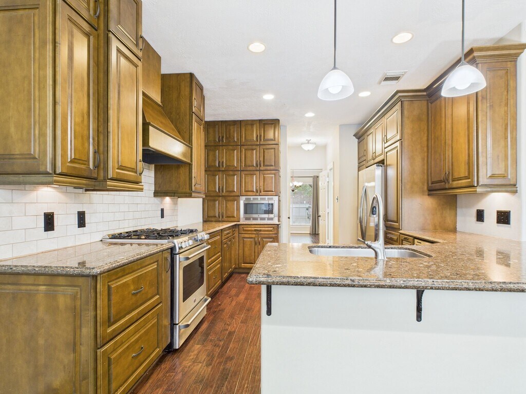 Beautiful updated 4 bedroom home in the friendly Woodstream neighborhood,located on a short cul de sac street. Home has many great updates including wood floors,a spectacular updated kitchen,with custom cabinets,stainless appliances,gas cooktop and granite counters. Home comes with the refrigerator and washer and dryer! Primary bedroom is on the first floor with a large luxurious bathroom with a soaking tub,separate shower,2 sinks and 2 closets. Upstairs are 3 bedrooms,super sized game room and a jack and jill bathroom. Large shaded backyard with a shed behind the detached garage. No pets and No smoking. Home has never flooded. Home is available and waiting for you to call it home. MLS# 57728493