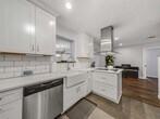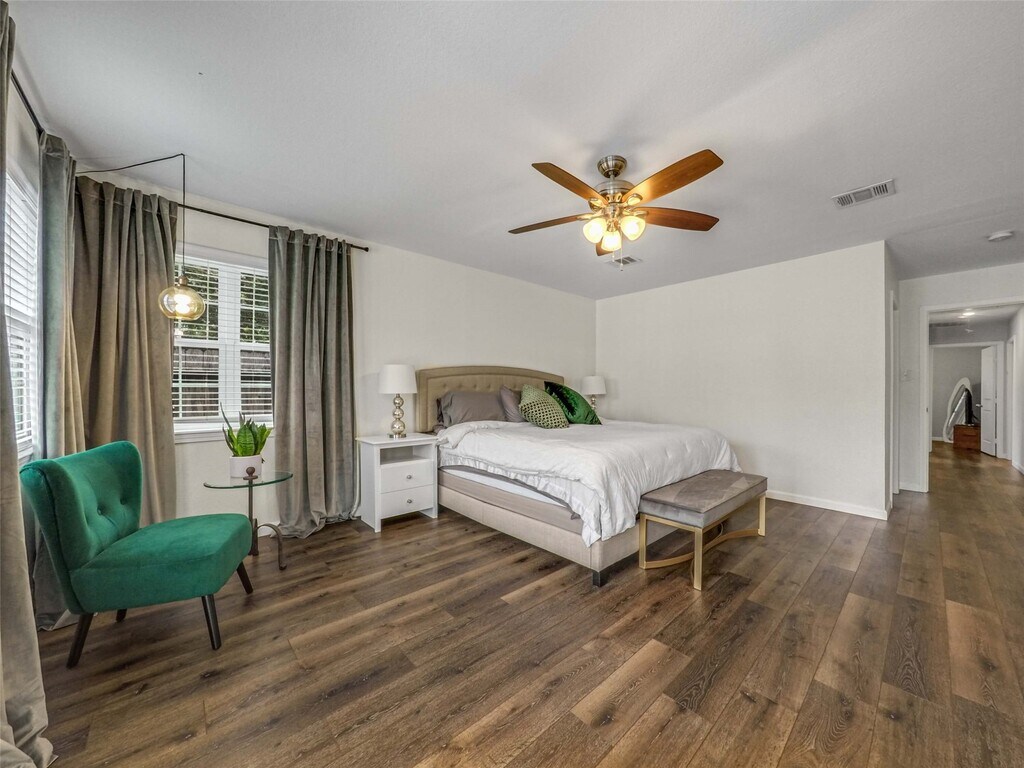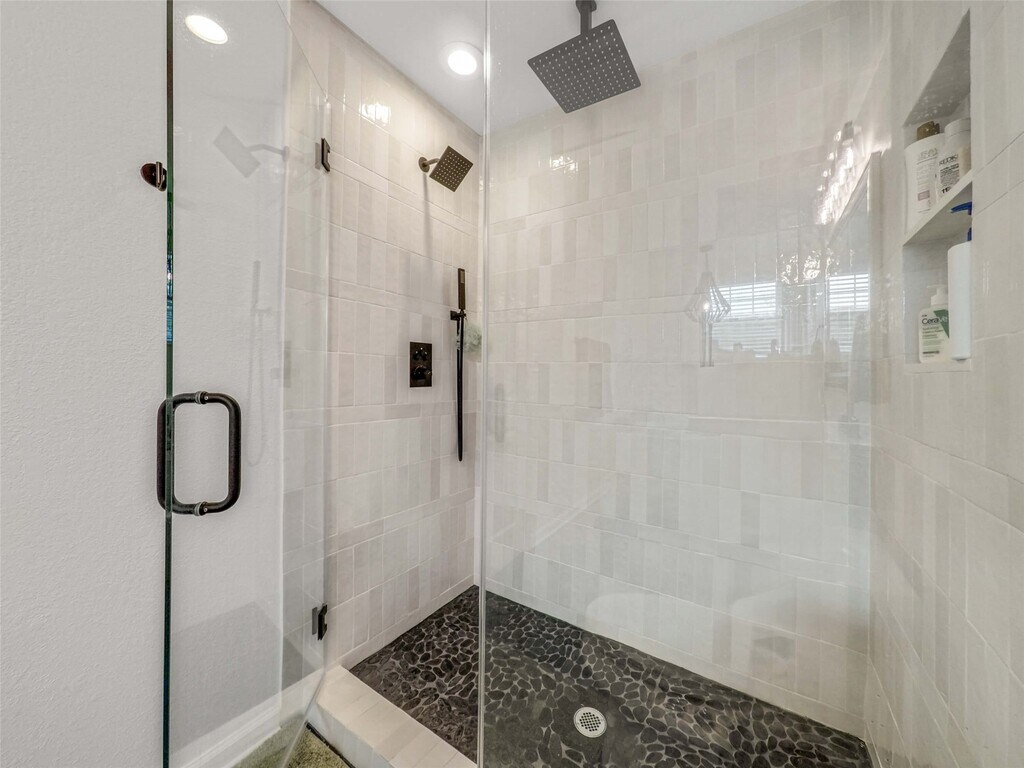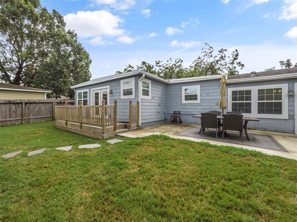 Call to schedule a showing! This stunningly renovated home located in Mangum Manor offers a modern living experience with beautiful details throughout. The remodeled kitchen is a focal point,boasting white quartz countertops,custom cabinetry,a farmhouse sink,soft close drawers,ample storage,and top-of-the-line SS appliances. Indulge in the luxurious,fully renovated bathrooms with a rainfall shower and a large soaker tub. Wood look vinyl plank floors flow from the living room to the bedrooms,enhancing the aesthetic appeal. The well-thought-out floor plan seamlessly combines open spaces creating areas to relax or entertain. Step outside to a serene backyard with no rear neighbors,a master bedroom deck,and a storage shed. Enjoy energy efficiency and lower electric bills with integrated solar panels,as well as a whole-home water filtration system. Upgrades like Pex/PVC pipes ensure peace of mind. Oversized driveway,and easy access to Galleria/610 Loop/Heights. MLS# 10729104
