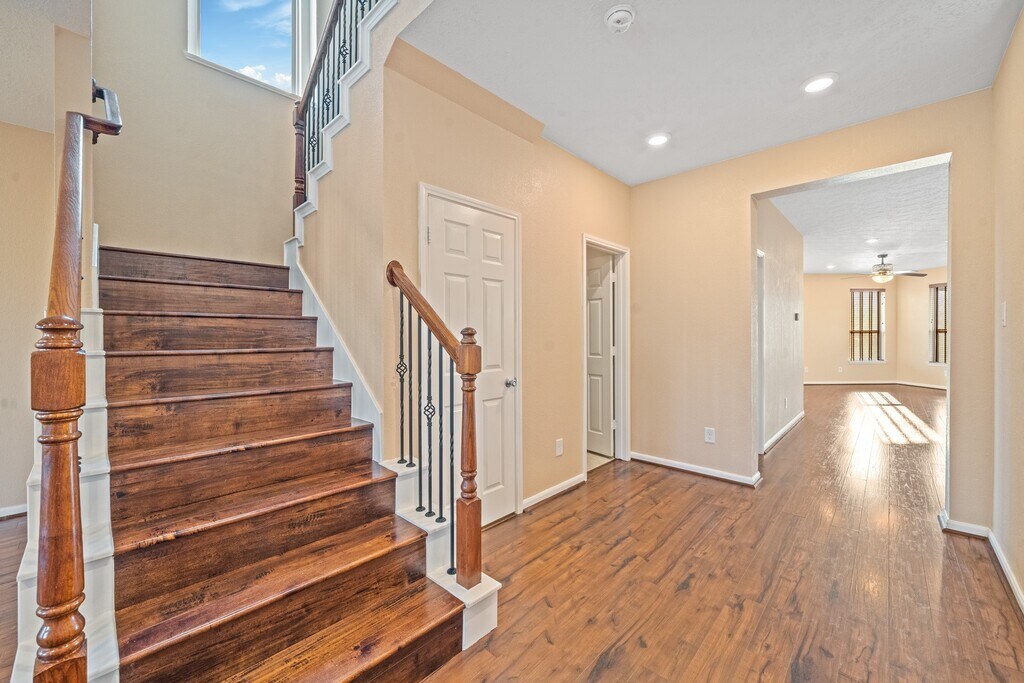 SECTION 8 is welcome – Energy-Saving 5-Bed,3-Bath Home with Modern Upgrades. Beautiful and energy-efficient 5-bedroom,3-bath home located on a quiet cul-de-sac. Solar panels are fully paid off,providing significant savings on electricity costs. This spacious residence features a bright and open floor plan with wood composite flooring,granite countertops,and stainless-steel appliances,including a Bosch refrigerator. The first floor offers a guest bedroom and full bath,ideal for visitors or multi-generational living. Upstairs includes a large game room and a luxurious primary suite with a spa-like bathroom. Additional highlights include smart plugs and an EV-ready garage. Conveniently located near shopping,dining,and major highways. MLS# 97507943
