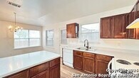 3 Bed, 2 Bath 1623 sq ft Single Story Home in a Gated Community. No Carpets! All wood-look tile floors throughout. Large Living Room with mock fireplace. Kitchen with breakfast bar, Stove, Dishwasher. Walk-in Pantry. Ceiling Fans throughout. Primary bedroom with Walk-in Closet. Primary Bath with a separate Shower/Garden Tub, dual sinks. Fenced yard with a covered patio. 2 car garage. Community Pool. Close to Randolph, Fort Sam, 410, IH-10.