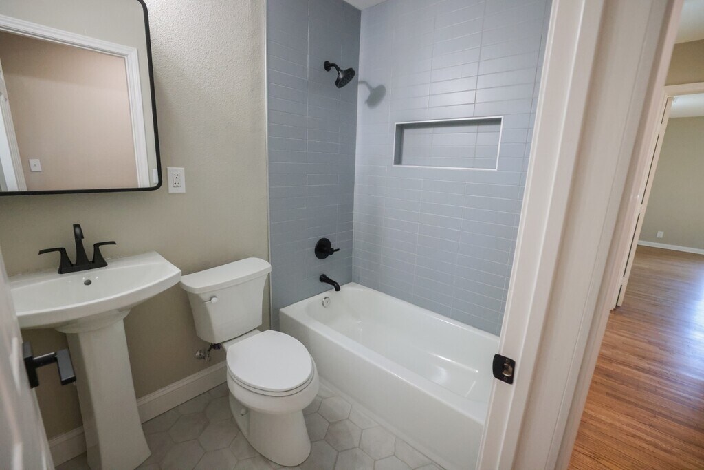 Beautifully remodeled 3 bedroom, 1 bath home with an attached 1-car garage! This charming home features an open and bright living area with refinished hardwood floors, a brand-new kitchen with stainless steel appliances, custom cabinets, and updated lighting. Fresh paint, modern fixtures, and a fully renovated bathroom add to the clean, updated feel throughout. Enjoy a spacious, shaded backyard with gorgeous mature trees and a brand new wood deck—perfect for relaxing or entertaining. Conveniently located with a great layout and move-in ready comfort.