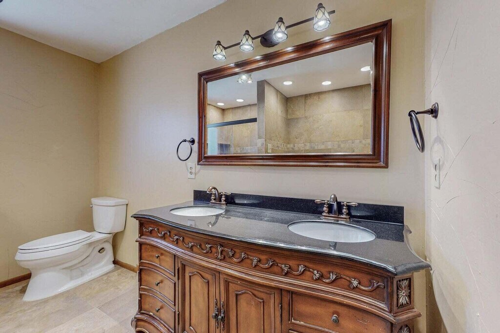 ntroducing a charming property located in Bernalillo,New Mexico,this delightful home offers a range of desirable features and amenities. Situated on a generous .63 acre lot,this residence boasts side yard access and a rare irrigation right to the ditch,ensuring lush greenery for your outdoor space. Space for an RV which offers an electric 50 amp service & water access. The property includes a convenient storage building with a garage door,providing ample room for all your storage needs,and comes equipped with electricity for added convenience. New TPO roof with warranty. Enjoy the owned solar panel too. The bedrooms have been recently updated with brand new carpet,providing a warm and inviting atmosphere. The backyard has been fully landscaped,offering a vibrant outdoor oasis.
