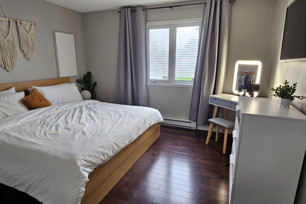 Feel at home in this comfortable 3-bedroom condo in the heart of Aylmer. This condo is just minutes from shops, restaurants, downtown Ottawa, Westboro, and Gatineau Park. The condo features a fully equipped kitchen for home-cooked meals including an air fryer and instant pot, a spacious and bright living room perfect for relaxing, and a private balcony with a small bistro set. There is one full bathroom. Enjoy the convenience of 2 free on-site parking spots. Pamper yourself at Koena Spa (4 min) or unwind at the renowned Nordik Spa-Nature (16 min). Hike and explore in Gatineau Park (9 min). Enjoy the beach and summer events at Aylmer Marina (10 min). Tee off at multiple golf courses within 10 min. Stroll through the charming Old Aylmer area (8 min). Discover trendy cafés and boutiques in Westboro Village (10 min). Drive into Downtown Ottawa for museums, shopping, and nightlife (15 min). No smoking or vaping is allowed anywhere inside the condo or on the balcony, and no parties or events are allowed, as this is a quiet residential building. Only registered guests are allowed on the property, and the maximum occupancy of 6 guests must be respected. Quiet hours are from 10:00 PM to 8:00 AM. Please keep music and TV at a reasonable volume at all times. Pets are not allowed unless pre-approved. Check-in is at 4PM and check-out is at 11AM. Late check-outs without approval may result in an extra fee. Includes a queen bedroom and a sofa bed bedroom, each with a dedicated workspace, ideal for remote work. Fast Wi-Fi (1.5g Fiber op) and 2 Smart TVs are available: a 55" in the living room and a 42" in bedroom 1. [SI]