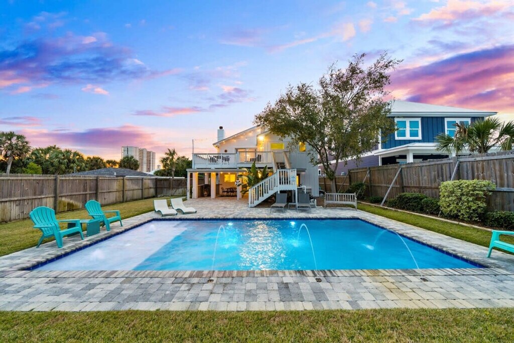 The advertised rate of $7,339/month is the lowest available price, based on a 1 month(s) stay with a move-in date of April 19, 2026. Rates vary depending on the duration of stay, season, and other parameters. For exact pricing and additional pricing components, please visit our website and enter your desired move-in and move-out dates. The rate is applicable when billed upfront; it can be higher if billed in multiple payments. Feel at home in this luxurious 4-bedroom, 4.5-bath vacation rental in Panama City Beach, FL. This spacious 2,400 sq ft home accommodates up to 10 guests and offers easy beach access. This home features a private backyard with a heatable pool and ample seating, an outdoor shower, an island-style dining area, and a spacious open-concept living and dining area with seating for 10 guests. The fully equipped kitchen is perfect for preparing meals. A full linen package, including bedding and bath towels, is provided. Pool heating is available October 1 to May 1 for $50 per day. On-site parking is available for 4 vehicles. Concierge services are available to assist with enhancing your stay, including airport and local transportation, private chefs, in-home dining experiences, golf cart services, beach set-ups, excursions, and local recommendations. Located in the exclusive Bid-A-Wee Beach neighborhood, this home offers private beach access to a secluded, undeveloped beach protected by local laws. You're just a short drive from the Gulf of Mexico’s famous white-sand beaches and emerald waters. The neighborhood is ideal for families and groups looking for a peaceful place to unwind after a day at the beach. Nearby, you’ll find local restaurants, cafes, grocery stores, and beach essentials all within easy reach. Popular attractions such as Pier Park are only a short drive away, offering shopping, dining, and entertainment for all ages. The maximum occupancy of this home is 10 guests. There is no smoking inside or outside while on the property. Quiet hours are between 10 PM and 7 AM. Guests must be at least 25 years of age to rent. This is a non-pet friendly home. Do not interfere with exterior safety devices, Wi-Fi equipment, pool systems, or the pool alarm which is required by Florida law for guest safety. Registration Number: 61368 [SI]