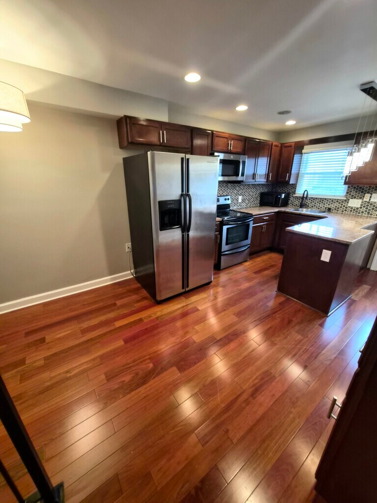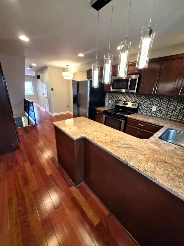 Enjoy rent for $2900 for 3 mos rent incentive! Welcome to your dream home in the vibrant Riverside neighborhood! This stunning end-of-row residence boasts four spacious floors, including a fully finished basement bedroom or office space. As you cross the threshold, you're greeted by gorgeous hardwood floors and exposed brick walls that exude character and warmth. The inviting living room flows seamlessly into a well-appointed kitchen and dining area, featuring granite countertops and custom cabinetry perfect for culinary enthusiasts. and game day! A convenient half bath on this level adds to the home's functionality. Head upstairs to find two of three sizable bedrooms, each filled with natural light and ample space, accompanied by a beautifully designed full bathroom. Ascend to the top floor and the incredible primary suite, where tall tray ceilings create an airy ambiance for your private retreat. Enjoy breathtaking views of Charm City from your private retreat, complete with a HUGE luxurious spa-like bathroom including a soaking tub, double vanity. BONUS room in the basement for an office , extra bedroom or TV room! Don't miss your chance to live in this exquisite home in a prime location just a few blocks from the harbor, offering easy access to Federal Hill's , Riverside and Locuwt Point renowned dining and shopping scene. 1 block from Riverside Park perfect for a sunny day stroll,walking your dog or a sip in The Riverside pool! Schedule a tour today!