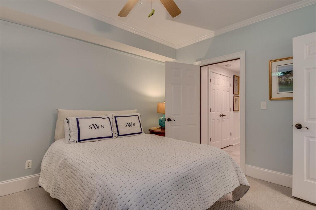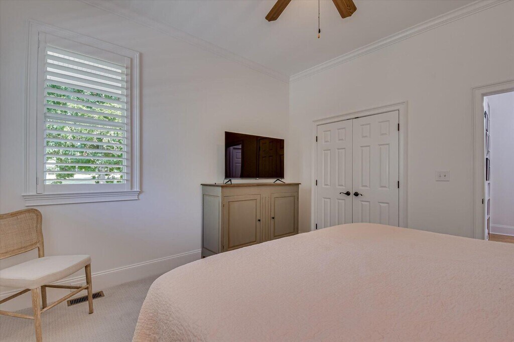 Welcome to this magnificent 3-story home featuring 4 bedrooms and 5 full baths,perfectly designed for all generations with its convenient elevator and expansive wraparound porches. Located on a generous 1.3-acre lot,this property offers breathtaking golf views,ample natural light,and beautiful hardwood floors throughout,making it a true gem in the Mount Vintage community. The upper-level main living areas are designed to capture the spectacular golf views,with a fabulous open floor plan that seamlessly blends indoor and outdoor living. The family room,complete with built-ins and a cozy fireplace,opens onto the newly redone porches with gorgeous IPE wood flooring. A heated and cooled section of the porch is an ideal spot to unwind with a good book. The gourmet kitchen is a chef's dream,boasting granite countertops,an island breakfast bar,tray ceiling,pantry,abundant cabinet storage,and a wet bar. A cozy den on the upper level serves as a versatile flex room,perfect as a playroom,office,or a potential 5th bedroom,with access to a full bath. The luxurious master suite features French doors leading to the porch,a custom walk-in closet,and a master bath with his and her vanities,a fabulous shower,and direct access to the laundry room. Spacious spare bedrooms ensure comfort and privacy for family and guests. Additional features of this stunning home include an in-house vacuum system,a Rinnai tankless gas hot water heater,county water and sewer,natural gas,an irrigation system,and beautiful up-lighting. The 2-car garage comes with an oversized storage room,perfect for a workbench or golf cart storage. Fenced-in yard area ideal for containing your 4-legged friends! Living in the Mount Vintage Subdivision means enjoying a plethora of amenities,including golf,tennis,a pool,fitness facilities,and much more. This exceptional home offers a perfect blend of luxury,comfort,and convenience,all set within a vibrant and active community. Don't miss the opportunity to make this dream home your own!