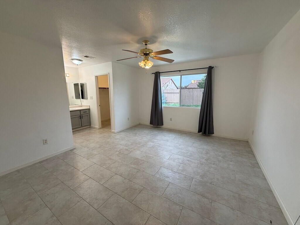 Welcome home to this bright and spacious 3-bedroom, 2-bath residence featuring an open-concept layout and a seamless flow between living, dining, and kitchen areas—perfect for everyday living and entertaining. The kitchen offers generous cabinet space, modern finishes, and a breakfast bar that opens to the main living area, keeping everything light and connected. The home is filled with natural light and showcases tile flooring throughout, creating a clean, modern feel that’s easy to maintain. The living room features a cozy fireplace and opens to the backyard through sliding glass doors, blending indoor and outdoor living. Step outside to a private, fully fenced backyard with a large concrete patio—ideal for relaxing, outdoor dining, or weekend gatherings. The yard offers plenty of green space with room to enjoy or personalize. Additional highlights include comfortable bedrooms, well-appointed bathrooms, ceiling fans, and a functional layout designed for both privacy and convenience. This home offers the space, comfort, and style you’ve been looking for—ready for you to move in and make it your own. Don't miss out on making this home your own! Call us today to schedule a tour, ! CA DRE 01993295