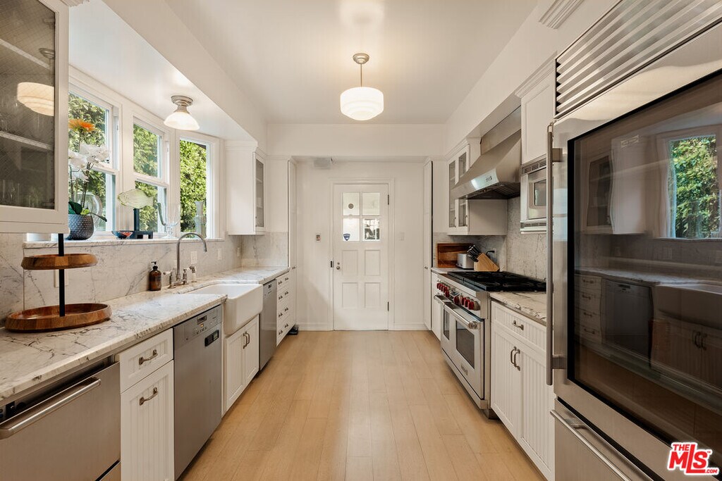 Set along one of the most coveted stretches of the California coastline, La Petite Maison" at 501 Palisades Beach Road is a rare expression of refined coastal living in Santa Monica. Privately hedged and masterfully designed, this five-bedroom, four-bathroom residence blends timeless charm with elevated modern comfort. A long, sun-drenched approach reveals an exquisite outdoor setting anchored by a resort-style swimming pool and spa, evoking the serenity of a secluded retreat just moments from the ocean.Inside, the home unfolds with effortless elegance. A gourmet kitchen appointed with high-end finishes flows seamlessly into a charming breakfast nook, while a bar area sets the tone for sophisticated entertaining. Expansive living spaces are bathed in natural light, opening gracefully to the outdoor terraces and lush surroundings. Upstairs, tranquil bedroom suites offer a private sanctuary, with select rooms enjoying treetop and coastal ambiance. The detached guest house provides an ideal extension for visitors with its own kitchen enhancing both versatility and exclusivity. Manicured landscaping, towering greenery, and complete privacy frame the property, while four dedicated parking spaces ensure convenience in this premier beachfront location. "La Petite Maison" is a rare offering where understated luxury meets the effortless rhythm of seaside living, just steps from the sand yet worlds away from the ordinary." MLS# 26667853