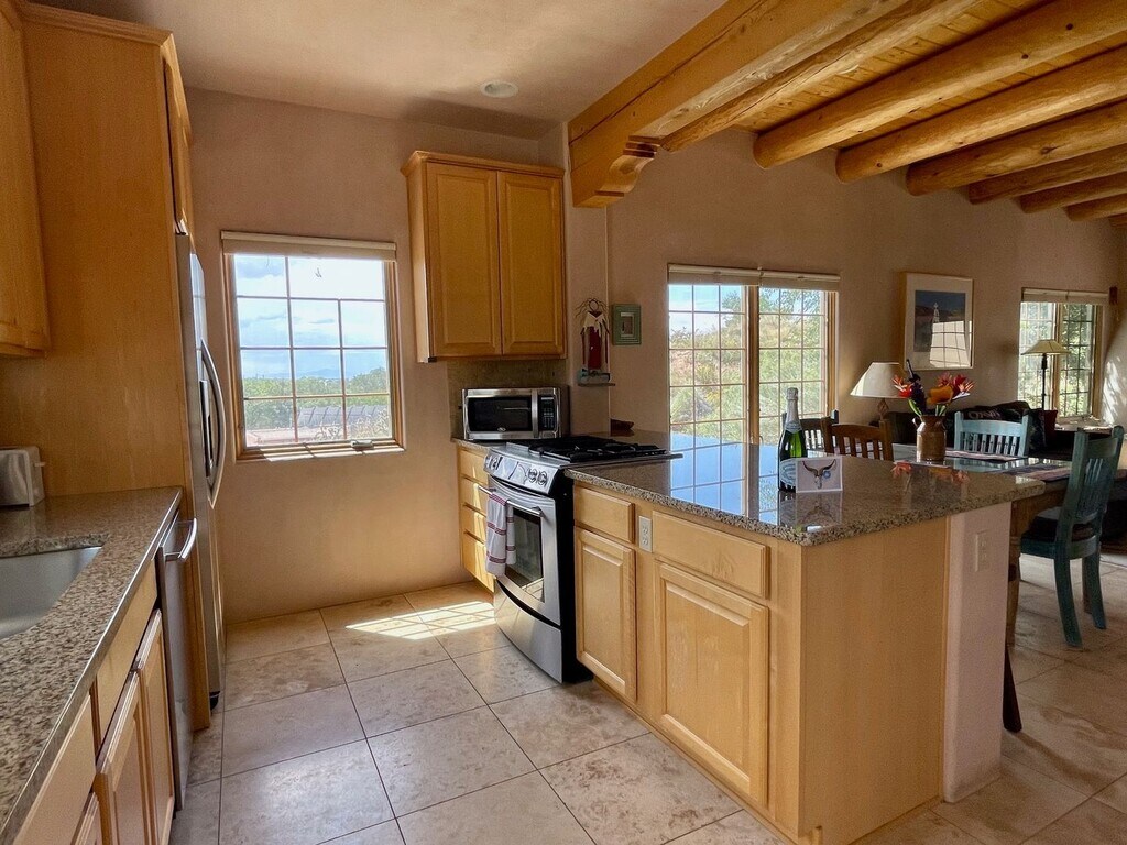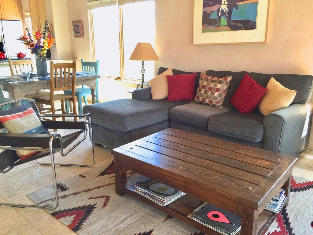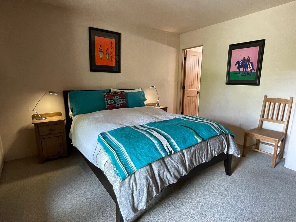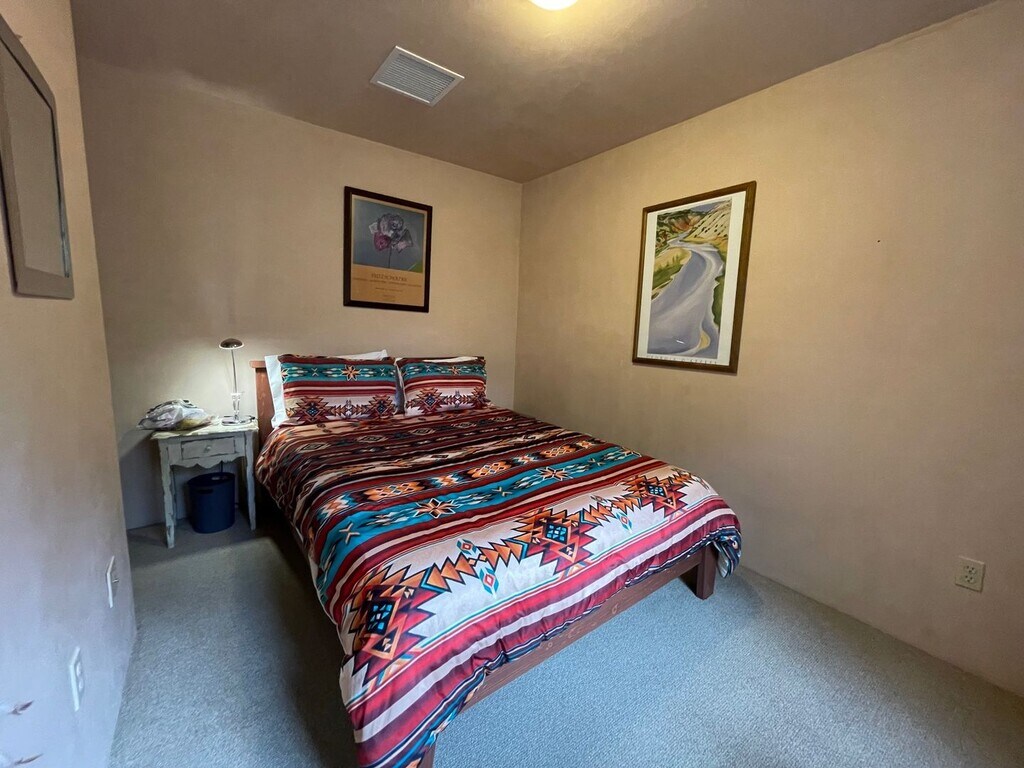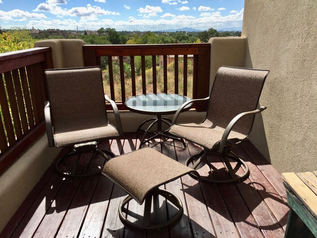 $3,000/month - 2 Bedroom | 2.5 Bathroom | 1,115 sq. ft. Located in the Rosario Hill Compound on Santa Fe’s north side! This beautiful two-story home sits at the top of Rosario Hill, providing great views of the Sangre de Cristo Mountains, city lights, and the distant mountains to the south. The main level includes the main entry, a primary bedroom, and second bedroom. The primary bedroom includes a queen bed, new HDTV, a walkout patio with views of the Sangre de Cristo Mountains, and an en-suite full bathroom. The second bedroom includes a queen bed with a small office desk, there is also a hall bathroom with a shower. The second level includes the main living area, kitchen, dining, living room, powder room, a large deck and a smaller balcony. The open-plan layout provides a wonderful flow while the decks and many windows provide views and lots of natural light. The living area includes a sofa, chairs, a gas Kiva fireplace, and an HDTV with Blu Ray DVD set up for streaming. The front balcony off the living room includes a small table and chairs. The kitchen includes high-end appliances, a gas stove with an electric oven. The light-filled dining room comfortably seats four. Offered Furnished Only Forced Air - Air conditioning and Heating Gas Kiva Fireplace Stacked washer and dryer Off-street parking Offered Furnished Only $3,000/month + utilities One year lease required Tenants Transfer All Relevant Utilities Into Their Name First Month, Last Month, and Security Deposit Required