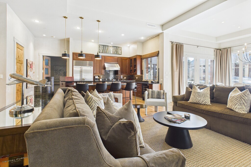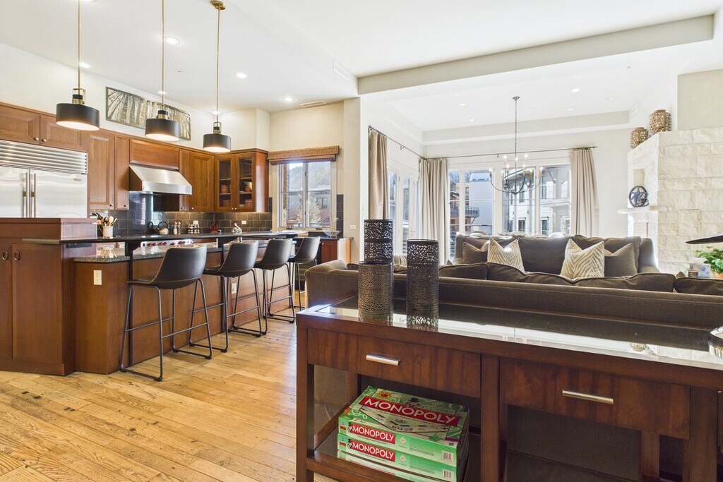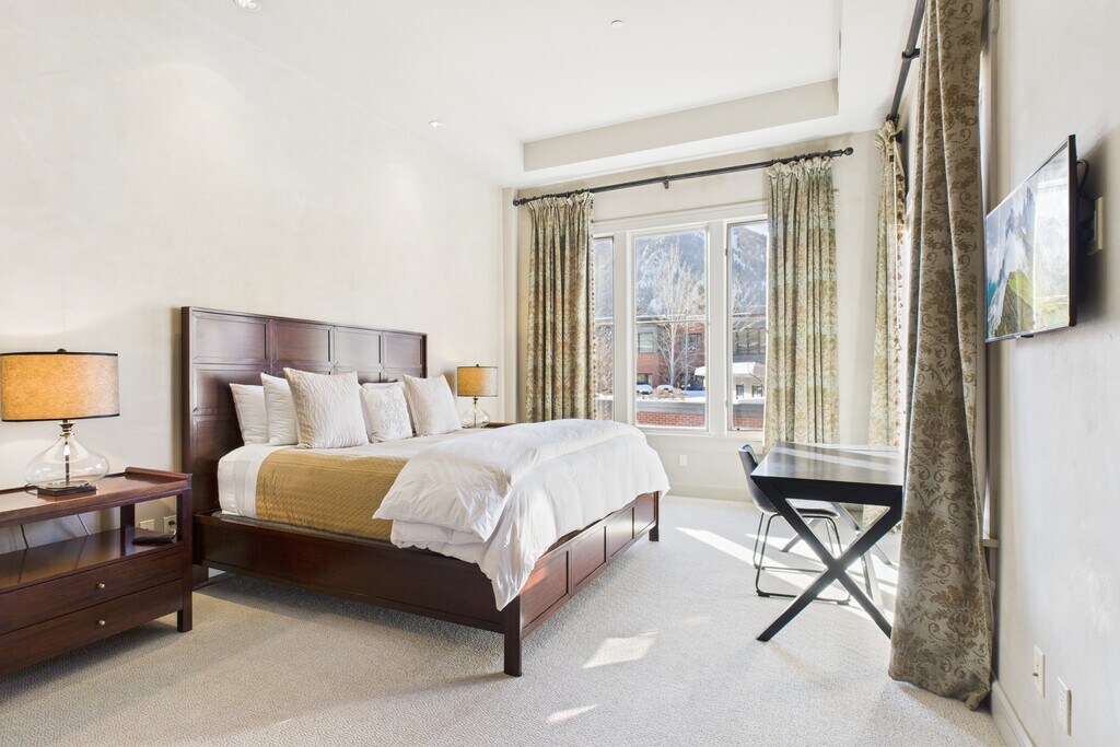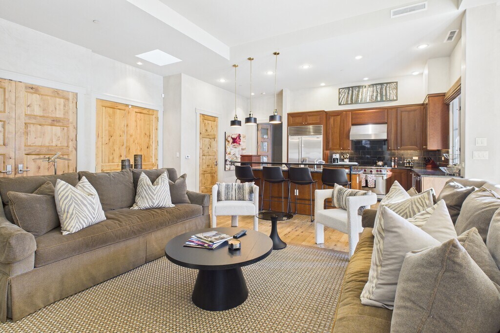Top floor, downtown condo with direct views of Aspen Mountain, and a fabulous location within walking distance to everything! Features include top floor location in a secure building with elevator access, 4 bedrooms, 4.5 baths, 2930 sq ft, spacious one level floor plan, 12-foot ceilings, hardwood floors, gourmet kitchen with wine cooler & warming drawer, air conditioning, custom gas fireplaces, heated bathroom floors, Jacuzzi tub & steam shower in master bath, private & covered balcony with custom BBQ & snowmelt floor, underground 2 car garage with elevator to the condo, storage unit, and landscaped grounds with pedestrian walkways & paths. Likely the best condo in the entire complex! Seasonal Monthly $55,000 Long Term $32,000 + Utilities Furniture may differ from photos.