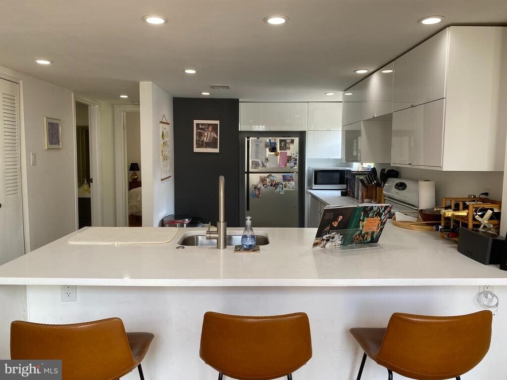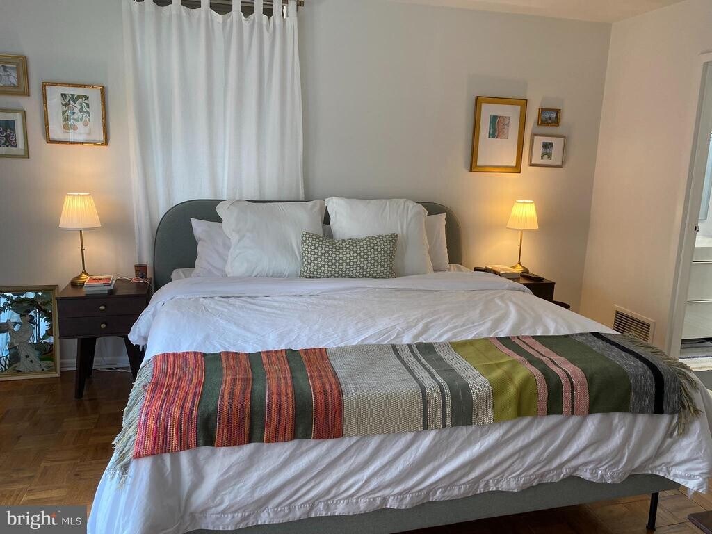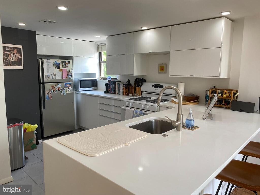 Rarely available home in charming Society Hill/Washington Square West. 3 bedrooms, 2 full bathrooms, updated kitchen, parquet hardwood floors, large private balcony, in-unit washer/dryer, central air & tons of light from huge floor to ceiling windows. The main level consists of a magnificent living room & dining room with soaring ceilings, kitchen with quartz counters and barstool seating, rear bedroom and full hall bath with access to washer and dryer. Upstairs you will find 2 large bedrooms with a renovated jack and jill bathroom plus a private balcony that you can access from the bedroom or separately from the hallway. Simply a fantastic property that exudes charm with soaring ceilings, tons of closet space & amazing corner natural light with floor to ceilings windows. Live on a beautiful tree-lined street in one of Center City's most historic neighborhoods. Short walk to Pennsylvania and Jefferson Hospitals, Whole Foods, Washington and Headhouse Square & numerous parks. Tons of nearby public transit and easy access to regional rail & 95. Won't last, schedule your showing today! Tenant responsible for electric & gas. Pets at landlord's discretion. Numerous monthly parking garage options nearby.