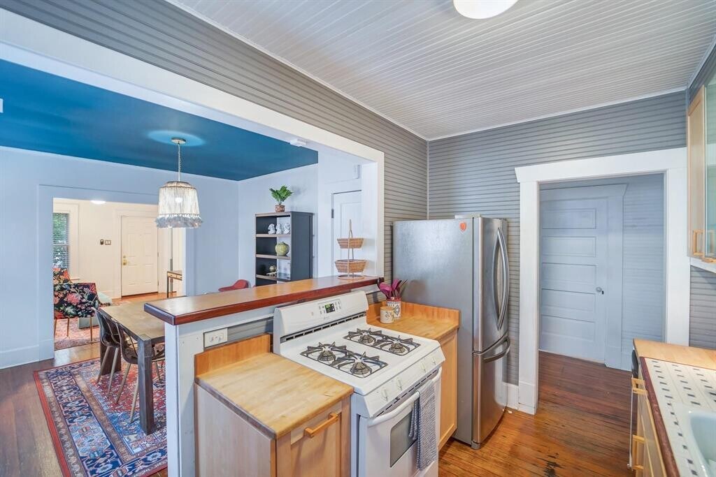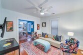Iconic 1940s Hyde Park bungalow — fully furnished and move-in ready. This charming 2BD/1BA home delivers 1,250 sq ft of character-rich living space plus a finished, heated & cooled attic (~300 sq ft) perfect for a home office, guest room, or extra storage. Original wood floors flow throughout, complemented by tall ceilings and classic wood trim. The open-concept kitchen features modern cabinetry with classic tile counters and a bar-top that opens to the living room — ideal for entertaining. Flex space at the back of the home offers endless possibilities: home gym, studio, office, or creative space, with an abundance of natural light and in-unit laundry. The secondary bedroom includes a murphy bed, giving your guest room double duty as a home office or sitting room. Step outside to a private backyard with white picket fence — your own quiet retreat in the heart of Central Austin. 1 covered carport (tandem, fits 2 cars). Wood floors throughout. Metal roof. Corner lot with large shade trees. Walking distance to Hyde Park Bar & Grill, Quack's, Fresh Plus, Shipe Park, and UT. Minutes to downtown and The Domain. Great neighborhood and the best neighbors on Ave A!! Great location!! Unfurnished- negotiable. MLS ID 6313516