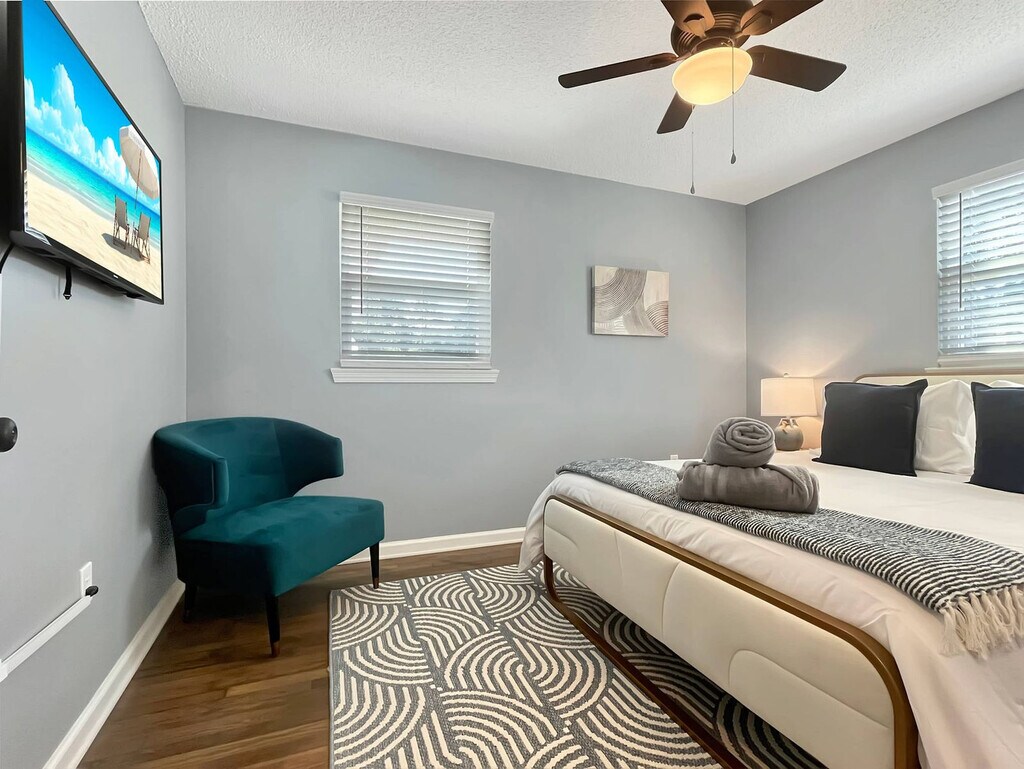 Feel at home in this charming 3-bedroom home in Rincon, GA, just 30 minutes from downtown Savannah. Perfect for families or business travelers, this home is a great choice for weekend getaways or extended stays. This cozy home features two living rooms, each with a Smart TV, offering plenty of space for entertainment or relaxing after a day in Savannah. The dining area includes a table for 4 guests, perfect for family meals or casual gatherings. The fully equipped kitchen comes with stainless steel appliances and all essentials for home cooking. There are 3 comfortable bedrooms with fresh bedding, a full bathroom, and a dedicated laundry area with a washer and dryer for your convenience. Outside, enjoy the huge fully fenced yard, ideal for pets, outdoor activities, or simply unwinding in a private setting. There are 5 Roku TVs in the living areas and all bedrooms for entertainment. Private parking is available. A pet fee of $70 will be charged if you bring a pet. This fee covers the extra cleaning needed to ensure pet hair and smells are removed. Located in a quiet residential area of Rincon with quick highway access, this home is close to Savannah’s attractions, restaurants, and grocery stores. Distances to key locations include downtown Savannah (Historic District) at approximately 18 miles (23–30 min drive), River Street at approximately 18 miles (25–30 min drive), Tybee Island at approximately 28 miles (35–40 min drive), and Savannah/Hilton Head Airport at approximately 26 miles (35–40 min drive). Nearby grocery stores include Walmart Supercenter (434 S Columbia Ave) at 0.5 miles (2 min drive), Kroger Marketplace (461 S Columbia Ave) at 1.6 miles (4 min drive), and Target (Savannah) at approximately 17 miles (25 min drive). Quiet hours are between 9:00 PM and 8:00 AM. Please be respectful of the property and the neighbors, as this is a quiet family neighborhood. Smoking or vaping of any kind is not allowed, and a $200 fee will be charged if evidence is found. No parties or events are allowed. Do not exceed the maximum number of guests listed. Guests must be at least 25 years old to book this property, and locals must contact the host prior to booking. Early check-in or late departures without prior approval are not allowed. Guests should be responsive and reachable through the platform from the time the reservation is made through the completion of their stay. Do not move any furniture or decorations within the premises. Please do not use the provided towels to remove make up or clean something that could stain them, or you could be subject to an extra cleaning fee. [SI]