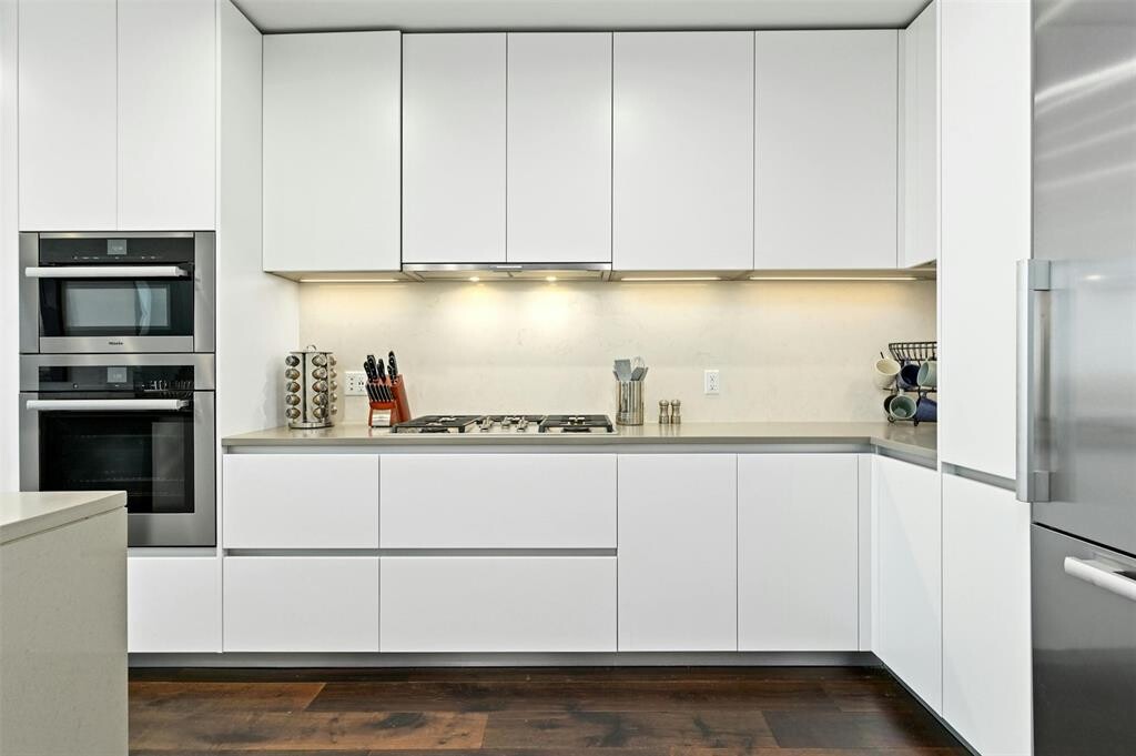 Come home to a designer, light-filled space, above Downtown Austin’s Market District at Fifth & West Residences. With seamless western views that extend from Lady Bird Lake to the Hill Country, you can enjoy the natural beauty of Austin while living in the center of it all. Entertain with style in the open layout. A sleek kitchen occupies an oversized footprint, perfect for food-lovers and home chefs. The thoughtfully designed kitchen includes flat-front, Italkraft cabinetry, quartz-topped island with a waterfall edge and breakfast bar seating. Luxurious upgraded Miele appliance package includes double ovens, built-in wine refrigerator, 5-burner gas cooktop and 36 counter depth refrigerator. Your owner’s suite is an escape from your busy life and comes complete with blackout shades and an oversized walk-in closet with custom Italian built ins. The marble-clad floors and floating vanity play off the Hansgrohe fixtures and frameless glass shower in your serene spa bath. Step out onto your private terrace for a little fresh air and sunset views overlooking the rolling hills of Westlake. Walls of glass and 9 ft+ ceilings make this 1 bedroom/1.5 bath residence feel more spacious than its 846 sq. ft. Dedicated storage, parking for one compact car, keyless entry, and smart home automation complete the picture. Fifth and West reframes the art of living downtown with striking residences, effortless ownership, and a perfect downtown location. Tenant pays all utilities except association fees and is responsible for building move-in fee and deposit if applicable. Tenant must change the air filter(s) every 30 days. No smokers. Up to 2 pets negotiable with deposit depending on size and breed. 24 Hour Advance Showing Notice."
