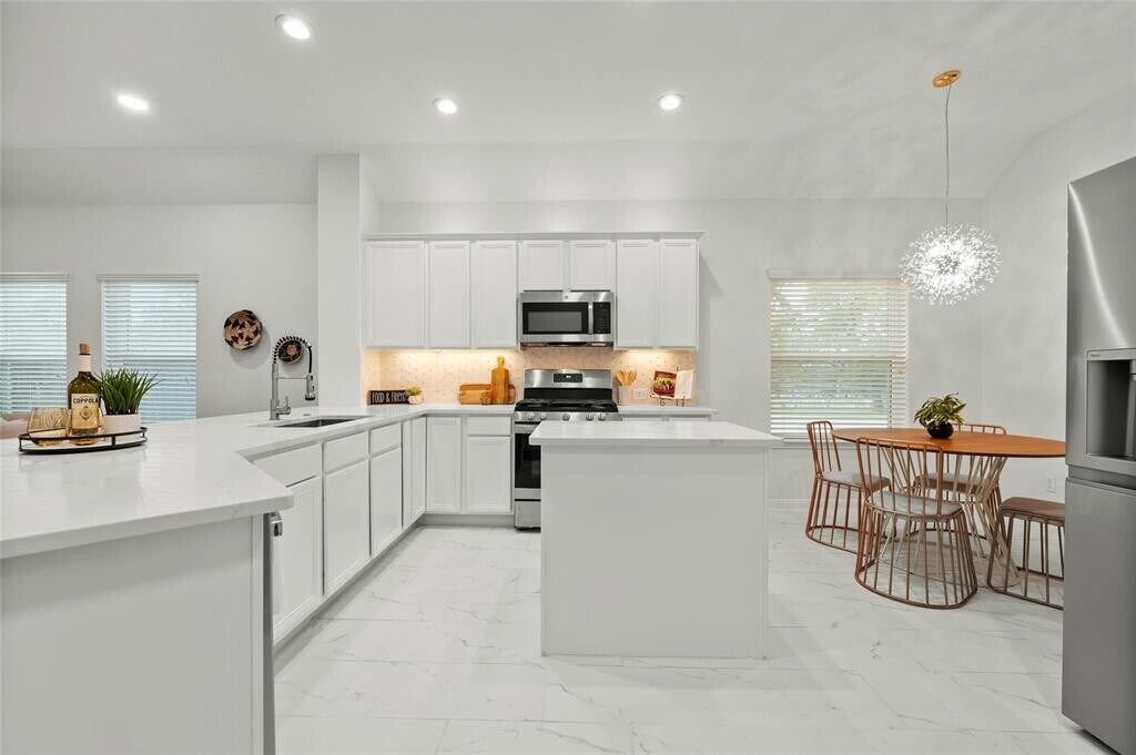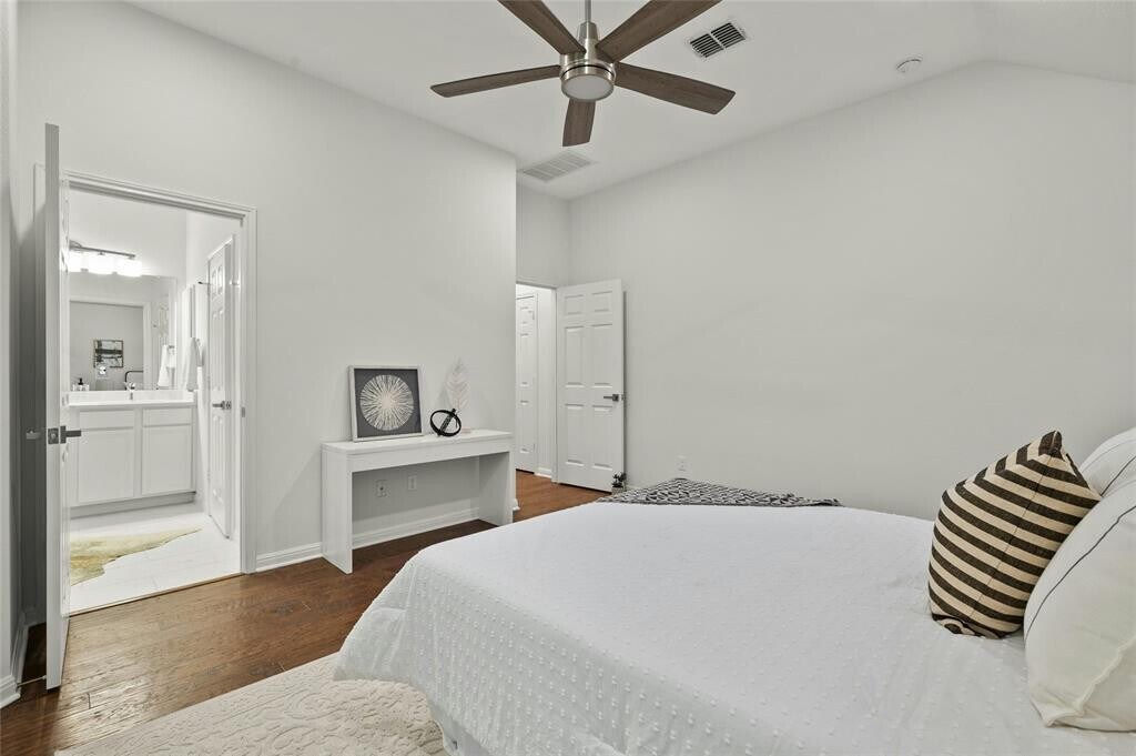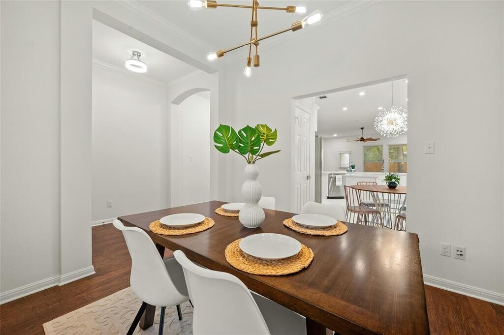 Discover a rare find in Central Austin—a move-in ready home with space, flexibility, and room to grow. Just ten minutes from Downtown, 5010 N Fresco sits in a walkable pocket of North Austin where tree-lined streets meet local coffee shops, markets, and Burnet Road’s dining and culture. Easy Mopac access keeps the rest of the city within reach, yet the neighborhood still feels like home. Built in 2012, this property offers the modern efficiency and low-maintenance living you want, paired with recent updates that make it shine. Fresh kitchen finishes and appliances, all-new LED lighting, ceiling fans, and hardware give the interiors a polished feel. Hardwood and tile flooring flow throughout, while the flexible layout adapts to your needs—a front dining room easily doubles as a home office or playroom, and the open kitchen connects naturally to the main living space for effortless gatherings. The private primary suite has been transformed with a spa-inspired bathroom featuring a freestanding soaking tub, marble shower, and generous walk-in closet. Outside, the oversized corner lot sets this property apart. Whether you dream of a lush garden, play space, outdoor entertaining, or even adding an ADU for guests or rental income, you’ll find the canvas ready. Covered tiled patios in both the front and back extend your living space year-round. New roof (2023) and freeze-resistant PEX plumbing give added peace of mind, while the location keeps you connected to everything Austin has to offer. To help you imagine the possibilities, we’ve included digital renderings that showcase different furniture layouts, an updated exterior paint scheme, and even a concept for an ADU—showing just how versatile both the home and lot can be.