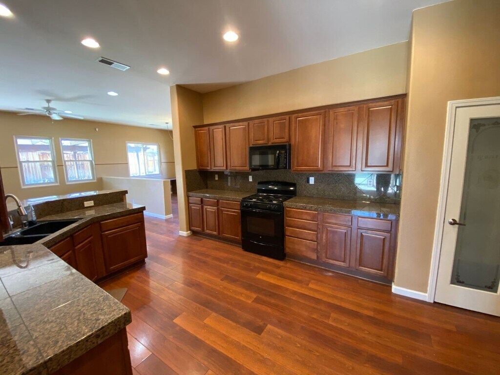 Must see this four-bedroom single-level home with open floor plan. Located in the sought-after, gated Vineyards Village community. Solid countertops, hardwood and carpet throughout, lots of windows, large rooms. Ovesized lot with huge stamped concrete covered and uncovered rear and side patios and courtyard. Great for entertaining. Three-car tandem garage. Conveniently located to shopping, restaurants, gyms and the Sparks Galleria. No smoking. No pets. Renter's insurance required. Schedule self showings online or visit our website