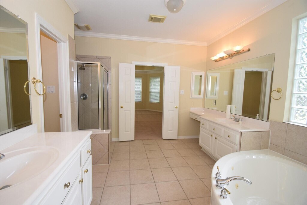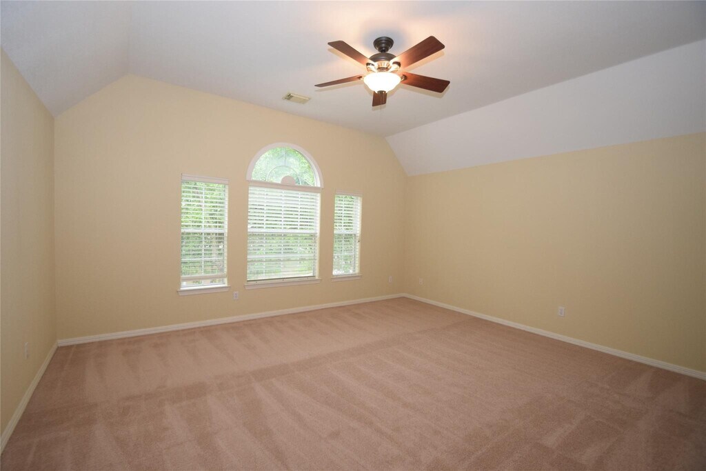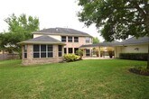 Kitchen with professional Viking stove and microwave. Refrigerator,washer and dryer included. There is much desired 2 bedrooms downstairs with 3 bedrooms upstairs with large game room with a flex room attached. Upstairs bedrooms attaches to Jack-n- Jill bathrooms. Entrance with high ceilings and spiral staircase. Formal dining room and living room that can be used as a flex room. Home faces onto a wooded green area park on a half circle street with a cul-de-sac lot,a huge private fenced backyard. Yard care is included. 3 car garage with wide driveway. Porte-cochere for covered direct access into house on those rainy days. Never flooded. Walk or bike to Alexander Elementary School,Whole Foods etc. and neighborhood pool with large park and play ground. MLS# 16304819