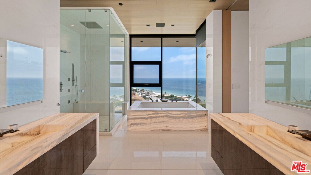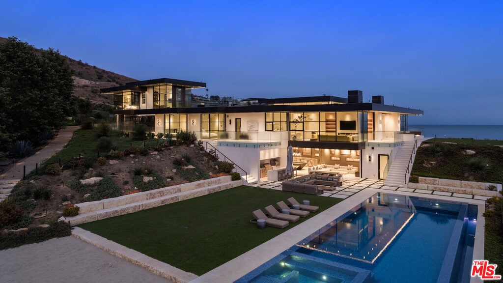 Perched high above the coastline with commanding, unobstructed views of Carbon Beach and the iconic Malibu Pier, this newly constructed estate is a true architectural triumph. Set on over 22 acres within the exclusive Carbon Beach Terrace Estates, the property is accessed through dual gates with 24/7 security and introduced by a dramatic glass entryway featuring an oversized pivot door and soaring ceilings. Designed with impeccable taste, the home is filled with natural light and finished with sophisticated furnishings and high-end materials. Every element has been thoughtfully curated from the statement-making glass staircase to the bespoke detailing throughout. The open-plan living spaces seamlessly blend modern comfort with refined luxury, creating a warm yet elevated atmosphere. The primary suite offers a peaceful retreat, complemented by a gourmet chef's kitchen, state-of-the-art cinema, private poker room, and luxury wellness amenities including a fitness center, indoor spa, steam room/sauna, hair salon, and private massage area. Outside, an infinity-edge pool with jacuzzi, expansive terraces with fire pits, and a private sandy beach provide the perfect setting for both relaxation and entertaining. Guest accommodations include private quarters with a stunning rooftop deck that rivals a five-star resort. Located just minutes from Nobu, Soho House, and Malibu's most celebrated destinations, this exceptional property offers an unrivaled coastal lifestyle defined by privacy, design, and world-class views. MLS# 25562249
