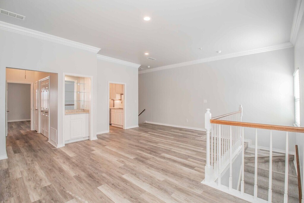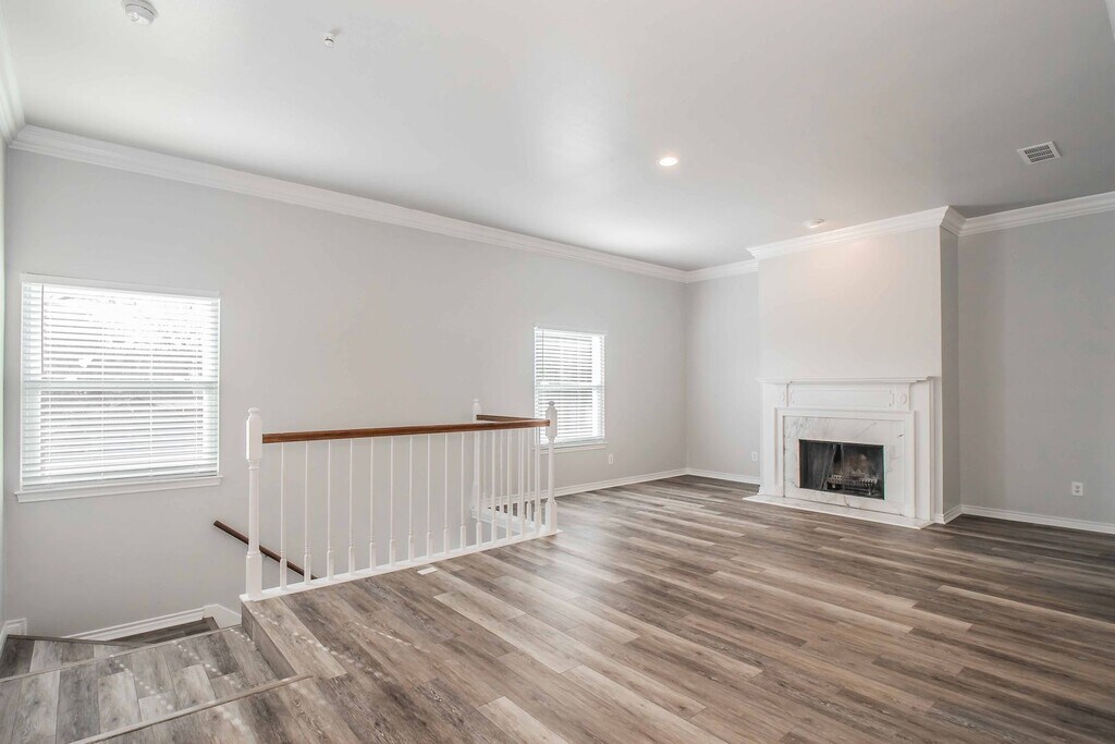 Don't miss the opportunity to live in this beautifully renovated townhome. This upstairs one bedroom, one bathroom townhome has been recently updated and boasts new flooring throughout, decorative paint, open living area with 2 fireplaces, new recessed lighting, new appliances, stone countertops and pull down attic for storage. Raised 10-foot ceilings and new windows make for great natural light throughout. Amenities include limited access gate, covered parking, community pool, front and rear entry access, and well-kept grounds.