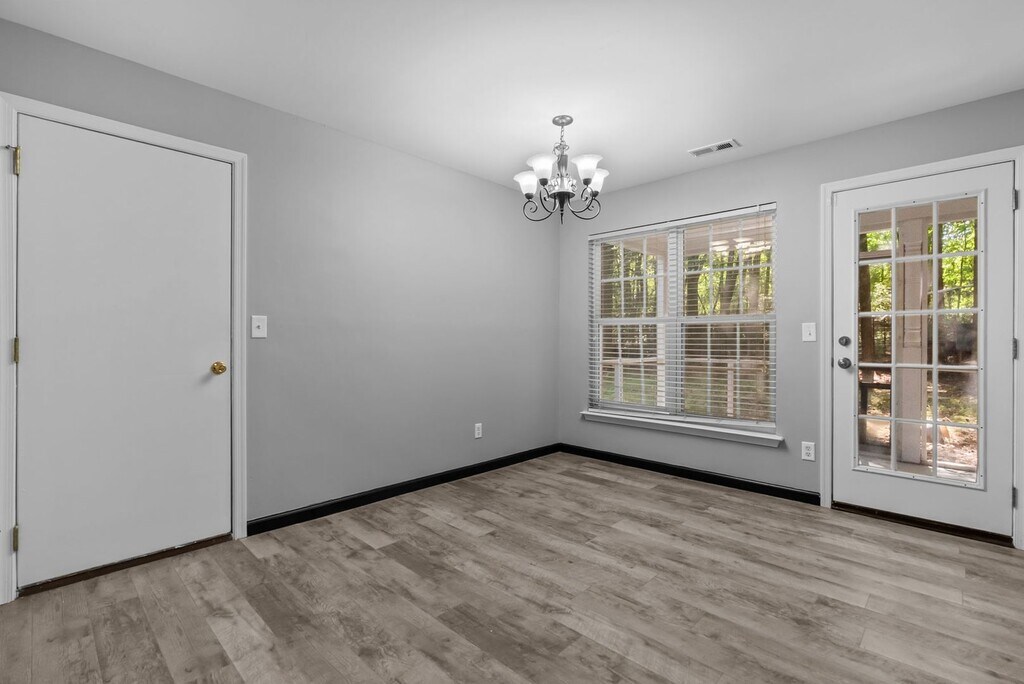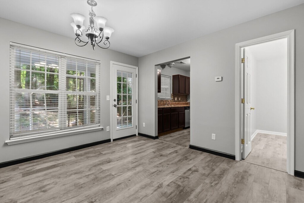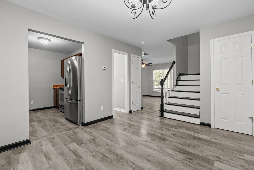 Ready for quick move in. Secluded location.4 beds, 2.5 baths, Living room, dining area, galley style kitchen, all bedrooms are upstairs, Driveway holds 2 vehicles, stainless appliances, screened in porch off the back door. Fresh paint and LVP floors thru out.