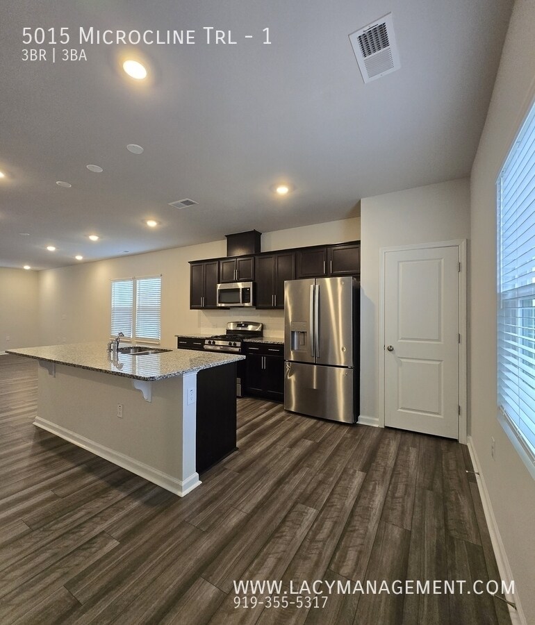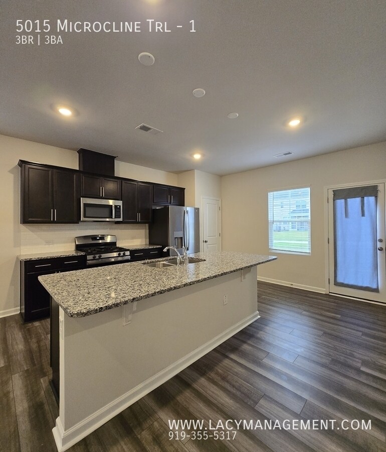 Limited-Time Offer: Admin Fee Fully Waived – Save $250! Modern 3-Bedroom Townhome in the Beautiful Trace at Olde Towne Community! Welcome to 5015 Microcline Trail, a stylish and move-in-ready 3-bedroom, 2.5-bath townhome, offering the perfect mix of comfort, convenience, and contemporary design. Located in the sought-after Trace at Olde Towne – Village Collection, this 1,685 sq. ft. home is ideal for those seeking a low-maintenance lifestyle without sacrificing space or style. Step inside to discover a bright open-concept floor plan featuring a spacious living area, a modern kitchen with stainless steel appliances, granite countertops, and a large center island perfect for casual dining or entertaining. The main level also includes a cozy dining area and a private patio for outdoor relaxation. Upstairs, the expansive owner's suite boasts a walk-in closet and a spa-like en-suite bath with dual vanities. Two additional bedrooms, a full bath, and a convenient laundry room provide ample space for family, guests, or a home office. Enjoy access to community amenities including Swimming pool, walking trails, parks, and easy proximity to downtown Raleigh, shopping, dining, and major highways. Don't miss your chance to own this beautiful townhome in one of Raleigh's fastest-growing areas—schedule your showing today! Schedule an online showing at: Submit your application online at: Resident Benefits: **Get over $100 in monthly benefits for just $49.95 with our Resident Benefits Package! Enjoy valuable services with the flexibility to customize or opt-out *** Application Criteria: a) Gross household income of at least 3 times the rent b) A credit score of 650+ is preferred; we are happy to discuss your situation if your credit score is lower c) No evictions in the last 5 years d)A one-time pet fee of $300 per pet applies. An additional deposit may be required for multiple pets. No monthly pet fee; pet screening is required after application approval: $30 per pet. e) One-time admin fee of $250 required to pay after signing the lease
