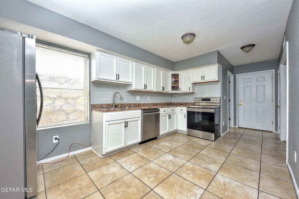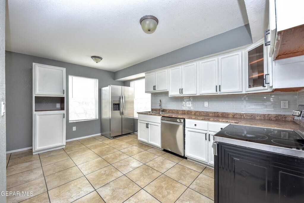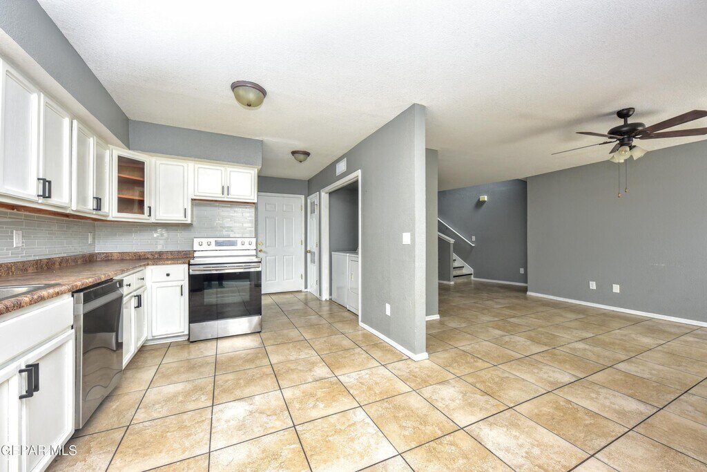 Lovely and very Spacious Home - Great location in a quiet & restful Cul-de-Sac yet only a minute to I-10 / N Mesa / Doniphan / Country Club. 3 Bedrooms and 3 Baths. Large Master with Full Bath,Walk-in Closet,with Views from the Windows and the Balcony. Flooring is all Tile with no carpets,Refrigerated AC for your comfort,Spacious Living Areas Down-Stairs and Up-Stairs. Appliances include Stainless Steel Refrigerator as well as the Washer & Dryer. Exterior (front & back) practical-minimal maintenance. Location has quick access to Shopping / Dining / Entertainment.