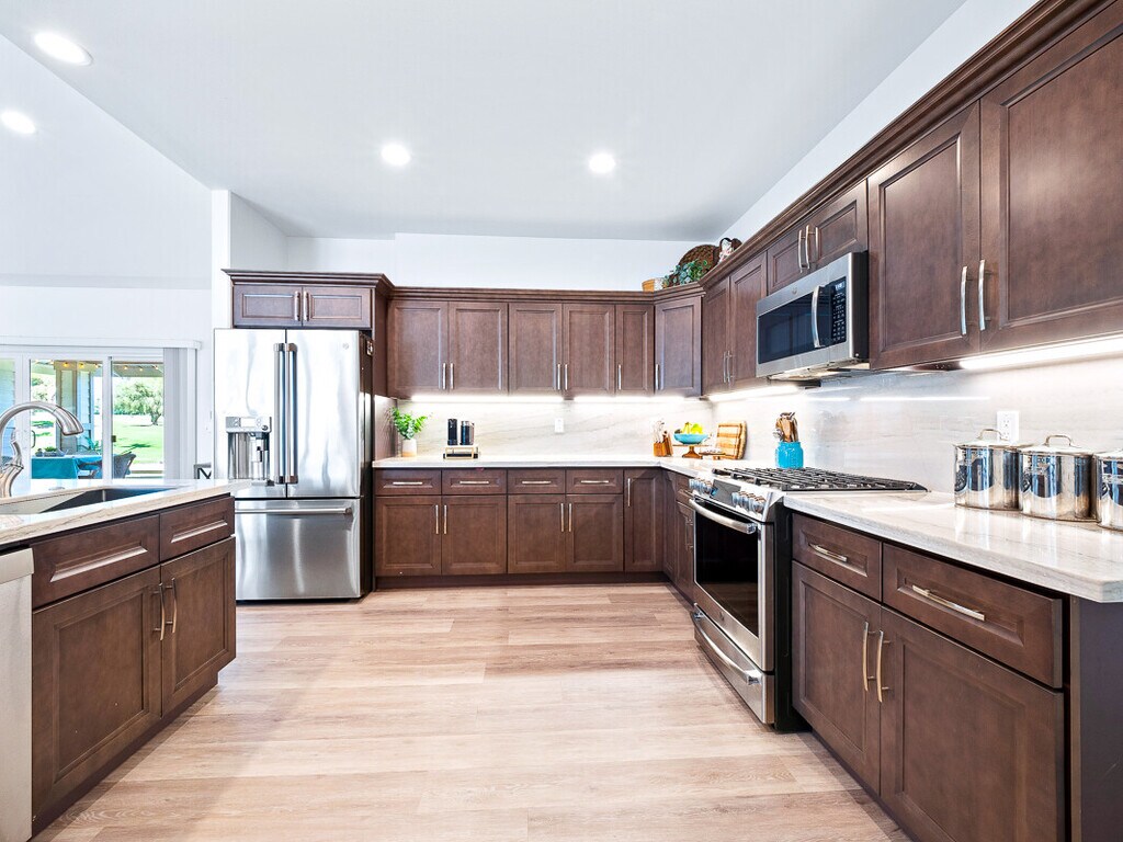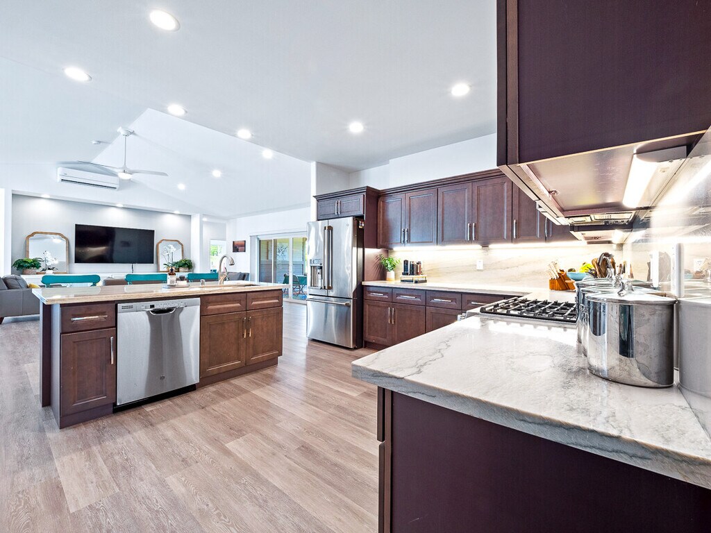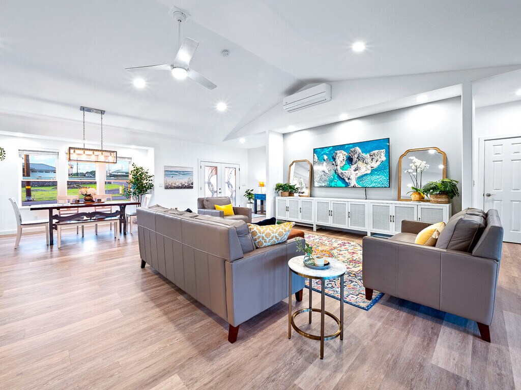 Executive golf course fronting home in Hilo. This large custom built, meticulously maintained home is located in the highly desirable Waiakea Fairways Subdivision. A resort style & climate controlled home on a superior lot featuring an open concept floor plan & over 3,450 Sq Ft. under-roof. Upon entering the home you will be greeted by a grand double door formal entryway with & a large foyer. The home is light and bright featuring tall vaulted ceilings, recessed lighting throughout & a well thought out floor plan with master wing on the right and guest bedrooms on the left. A a true entertainer's dream with a large stained concrete lanai space of nearly 400 Sq Ft. offering stunning golf-course, mountain and ocean views. A very comfortable home with top of the line Carrier Split AC/heat units which also offer a dry setting perfect for tropical weather. The chef inspired kitchen with quartzite stone countertops & back-splash, custom ordered LG Profile Smart appliances including a top of the line 5 burner gas stove, a Smart French Door refrigerator with Keurig K-cup and hot water feature. In the center island you will find an extra deep Kraus stainless steel sink with a pull out faucet and an LG Profile dishwasher offering the ideal set-up for entertaining. An oversized master bedroom with stunning golf course & partial ocean views offers an ensuite spa-like bathroom featuring a Kohler jetted tub, Moen fixtures & quartzite countertops & backsplash. A grand walk-in closet easily accessed from the bathroom with built in shelving. The nook area in the master can be used as an office. A sliding door out to the lanai from the master bedroom is perfect for making it out to watch the morning sunrise. Oversized additional bedrooms with larger than avg. closets & a shared beautiful bathroom. 3 additional storage closets & dedicated laundry room with LG W&D, cabinets & landing. Renters Insurance required. Recent rock wall has been added for additional privacy. Rent is $4,000 plus 4.712% GE tax per month. A minimum of 1 year lease preferred. Fully furnished rental. Long term lease desired, no smoking or pets. Tenant pays for electricity, cable, water & gas. Owner pays for yard maintenance & exterior pest control. Rent is $4,000 plus 4.712% GE tax per month.