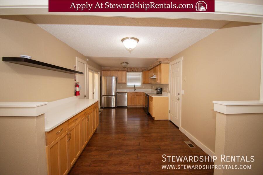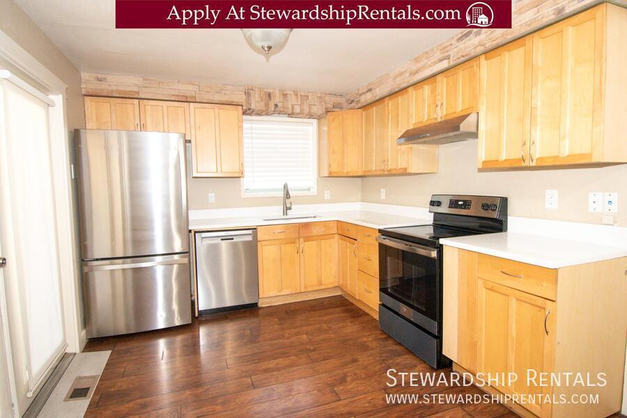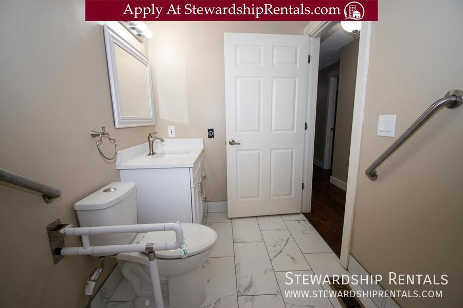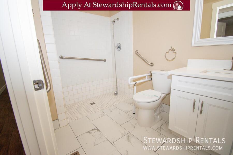 Move-in ready, accessibility-minded two-story home ideal for small adult foster care operators. The property features roll-in/step-free showers with handheld heads, multiple grab bars and transfer rails, interior stair handrail, low-threshold entries, and slip-resistant flooring — reducing up-front conversion work for licensure. Comfortable common space with a stone fireplace, an updated kitchen with stainless appliances and ample cabinetry for meal prep, plus a garage and private yard for safe drop-off and outdoor activities. Contact to schedule a tour or request a list of installed accessibility features. Driveway Electric Heat Garage Hardwood Floor House Pets Allowed Quiet Neighborhood Resident Responsible For Utilities Upstairs Washer & Dryer Hook Ups