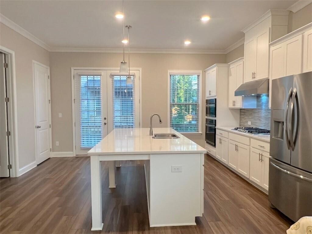 Modern Townhome attached to the much sought after Town Center in Peachtree Corners. Lock and leave lifestyle. Enjoy walking to Dinning,Shopping,Grocery stores,Playground and Movie. Enjoy the live outdoor concerts and seasonal events at the Park. This beautiful three-story END UNIT townhouse features 3 bedrooms,3.5 bathrooms with lots of natural light and oversized deck. The open concept living area designed for both relaxation and entertainment,featuring fireplace seamlessly flows into the dining area and gourmet kitchen. Magnificent kitchen features white cabinets with glass door,Quartz counter tops,huge island,stainless steel appliances. 10-foot ceilings on main and 9-foot ceilings on all other floors,Built-ins. Dual Master bedrooms. Main owners suite with elegant bathroom and oversized shower. Large laundry room upstairs. Perfect finished lower level with 2 car garage and guest bedroom with full bath. Beautiful durable engineered 7" vinyl plank flooring on main level and upper stair hall with oak stair treads. Walking distance to The Forum on Peachtree Parkway. Owner requests excellent credit 740+ and 3x monthly rent income to qualify.