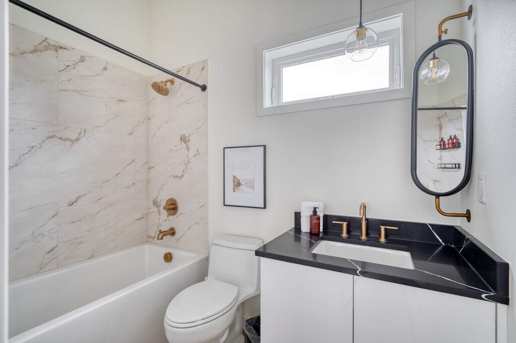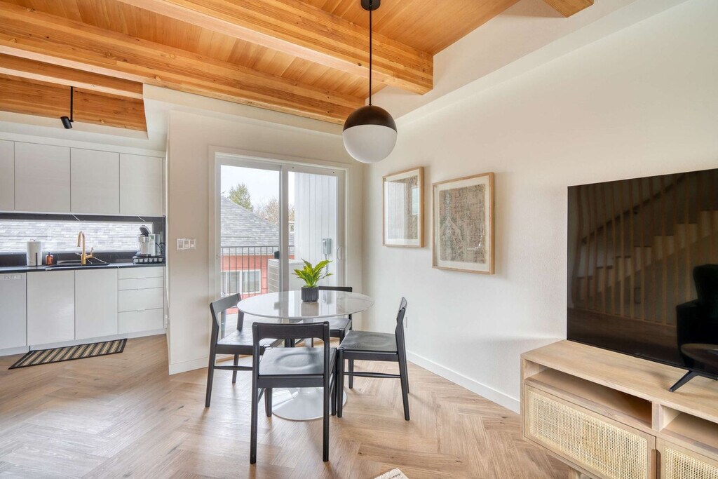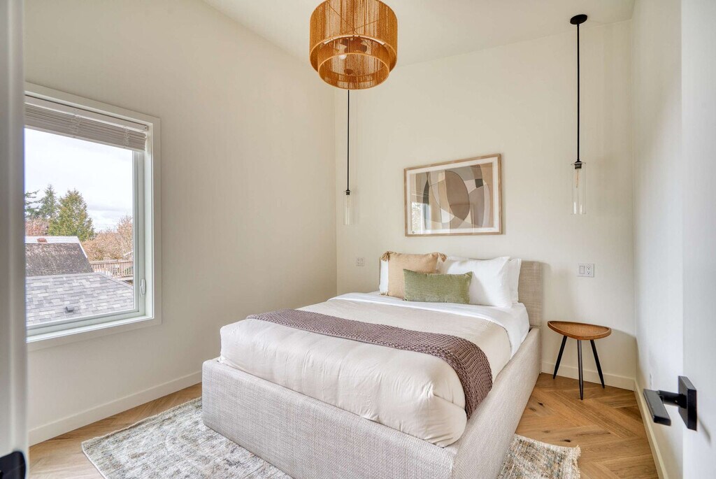 Feel at home in this 3-bedroom townhome in Portland’s Alberta Arts District, featuring soaring ceilings, designer finishes, and two Juliet balconies. The main floor features soaring wood-beam ceilings and herringbone floors. The fully stocked chef’s kitchen includes modern appliances. The living area offers a comfy sectional, Smart TV, and access to a small outdoor patio. Upstairs, you'll find two sunlit bedrooms with oversized sliding doors opening to Juliet balconies. These rooms share a modern full bathroom with dual sinks and a tub/shower combo. The in-unit washer and dryer are located on this floor. If you’d like full access to all 4 bedrooms and 2 bathrooms, inquire about booking the full home. Traveling with more guests? Book the separate downstairs mother-in-law suite to make it a 4-bedroom, 2-bathroom full-home rental with two private entrances. The downstairs mother-in-law suite includes a fourth bedroom, en-suite bathroom, kitchenette, and private entrance. One of Portland’s most vibrant and walkable neighborhoods, Alberta Arts is bursting with color, culture, and creativity. Murals line the streets, and nearly every block is home to an art gallery, boutique, coffee shop, or food destination. Walk to Salt & Straw for inventive ice cream flavors, grab brunch at Tin Shed Garden Cafe, or enjoy local beers at Great Notion. Alberta Park is just a few blocks away for green space and a relaxing stroll. You're just 15 minutes from downtown and 20 from the airport, close to everything yet tucked into one of Portland's most beloved residential pockets. This location has a 91 WalkScore. Alberta’s best restaurants, cafés, boutiques, and parks are just steps away. Street parking is free and easy to find. Downtown Portland is 15 minutes away, and the airport is a 20-minute drive. Quiet hours are in effect from 10 pm to 7 am, and please be mindful of the neighbors outside of these times. Smoking tobacco or marijuana inside is strictly prohibited and, if detected, will result in a $150 penalty. Events and/or parties are strictly prohibited and will result in fines per host discretion and immediate eviction. Any unauthorized guest is subject to a $150/guest penalty. Unauthorized use of extra beds or bedrooms incurs a fine of $75. The fee for undeclared pets is $200 per stay. Any unauthorized early check-in or late check-out is subject to a $75 fee. A lost, missing, or otherwise unreturned key is subject to a $100 fee. Missing remotes will incur a $50 fee. Violation of house rules may result in eviction and/or monetary fine. [SI]