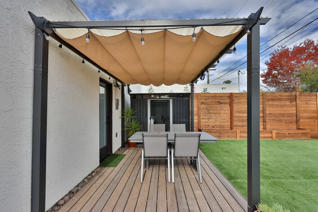 Feel at home in this modern, minimalist retreat in San Diego. This new-build home features two cozy bedrooms and one bathroom. This newly remodeled home offers air conditioning, modern comfort, and a peaceful atmosphere. The kitchen is fully equipped with an oven, stove, dishwasher, microwave, toaster, and fridge. A washer and dryer are available for your laundry needs. Relax in the bright, inviting living area, or enjoy the private backyard with a shaded pergola, outdoor dining area, and spacious grassy lawn. Optional EV charging is available. The apartment is in a prime location, only 5 minutes to the Zoo and 15 minutes to the beach, with easy access to San Diego’s top attractions. It's also a 5-minute stroll to Normal Heights’ vibrant Adams Ave, with breweries, cafés, yoga studios, restaurants, and local shops. There is free street parking available and exterior cameras for added peace of mind. Includes a dedicated workspace with a monitor, perfect for remote work. Registration Number: STR-07695L, 648850 [SI]