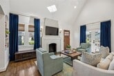 Located in the sought-after Maple Springs neighborhood, this charming Tudor blends timeless character with modern comfort. An unexpected vaulted ceiling in the living room creates an airy, inviting feel, while original refinished hardwood floors add warmth and charm throughout.The thoughtfully designed 1,816-square-foot layout features three light-filled bedrooms and two spacious bathrooms, complemented by an expanded kitchen that’s truly a dream for any chef. Additional highlights include a finished two-car detached garage and a turfed backyard ideal for effortless entertaining. A rare opportunity to enjoy classic Tudor style with today’s easy living.