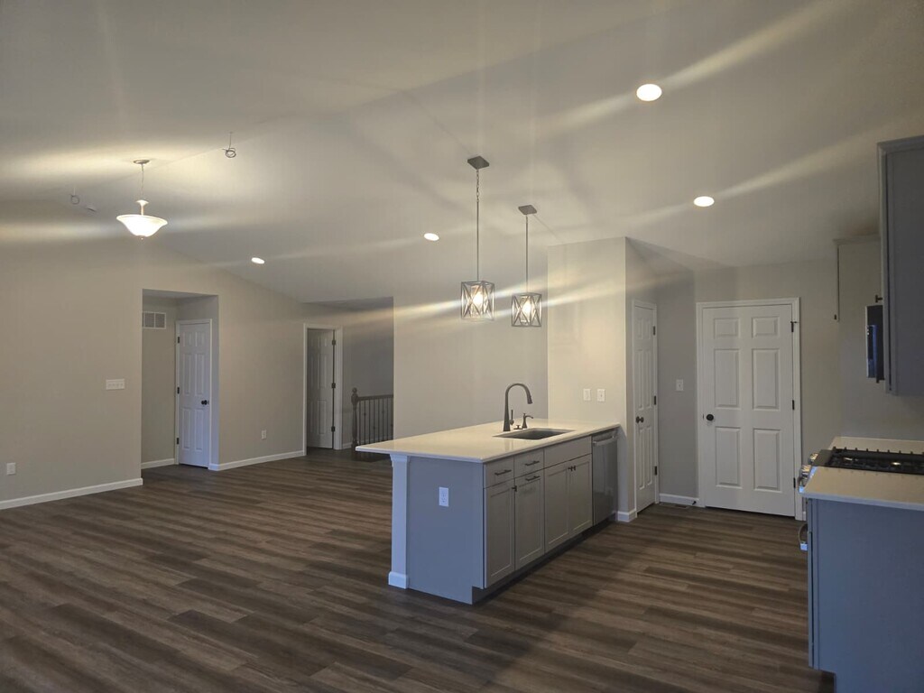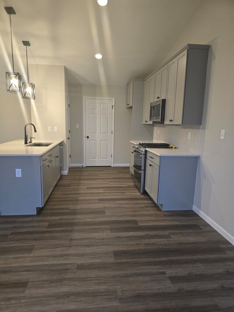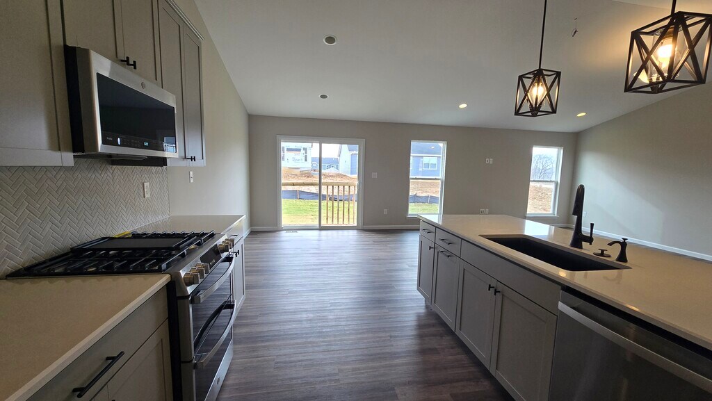 Discover the perfect rental home where modern luxury meets everyday comfort! Step inside to an impressive open floor plan with soaring vaulted ceilings, 3 bed 2 full bath ranch with stunning 6-ft windows that fill the space with natural light, and rich wood-laminate flooring throughout the main living areas—setting the stage for stylish living and effortless entertaining. The chef-inspired kitchen is a true showstopper, featuring an oversized island with breakfast bar seating, elegant Level 4 white 42" cabinetry, gleaming quartz countertops, stainless steel GE appliances, and a spacious walk-in pantry. Host dinners with ease in the bright dining area, complete with a sliding glass door leading out to the future covered deck—perfect for enjoying the outdoors. Retreat to the serene master suite, offering a large picture window, a private spa-style bathroom with double sinks and a walk-in shower. Convenience continues with main-floor laundry, upgraded lighting and plumbing fixtures, classic 6-panel interior doors, an extended garage with coach lighting, and a lower-level ¾ bath rough-in for added flexibility. Located in the vibrant Harvest community, you'll enjoy unmatched amenities designed for fun, relaxation, and connection. Explore a nature-inspired play area with water features, a sprawling 13+ acre town square, civic lawn, food truck court, orchards, pumpkin patch, community gardens, pickleball and bocce courts, playgrounds, scenic trails, and so much more! This is more than a place to live—it’s a lifestyle waiting to be enjoyed. Secure this incredible rental while it’s available!